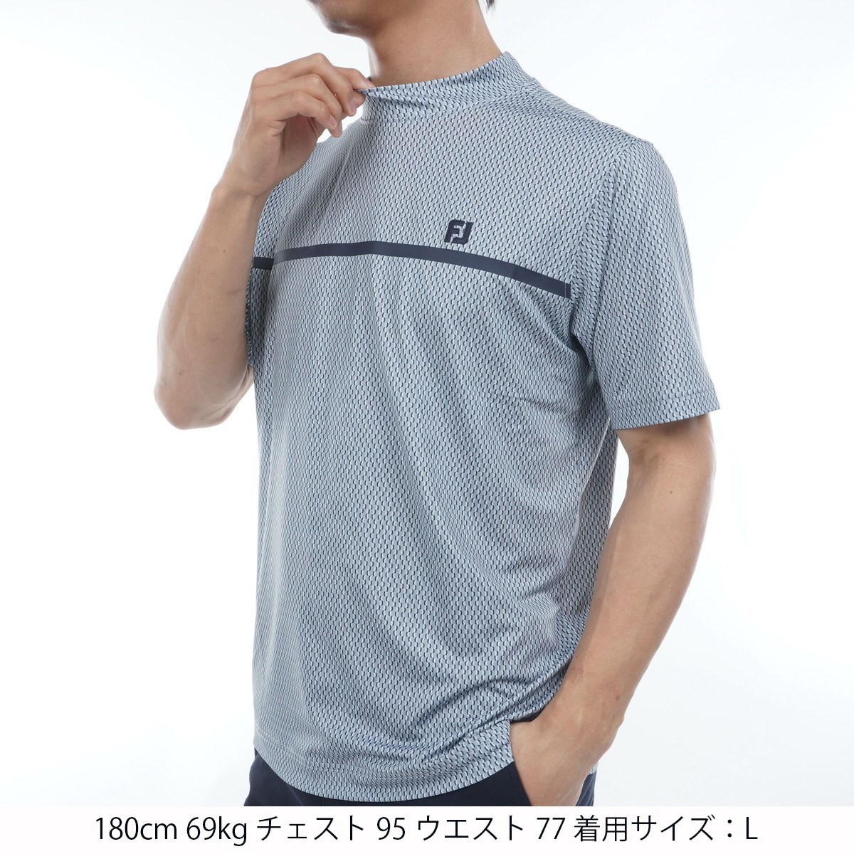 フットジョイ Foot Joy ストレッチ チェストラインモックネック半袖シャツ L グレー