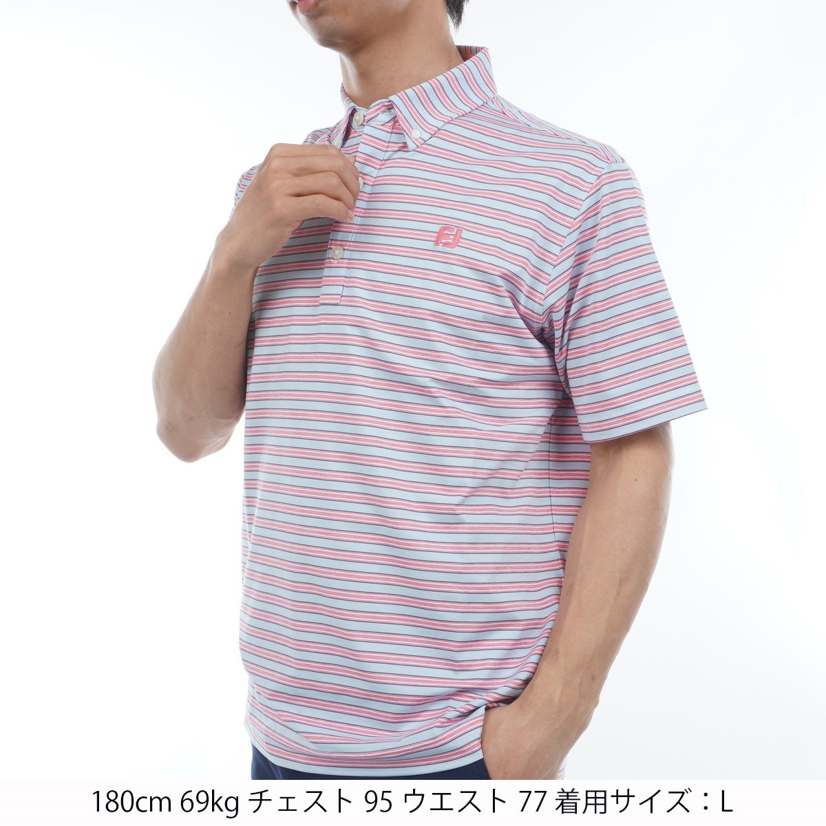 フットジョイ Foot Joy ストレッチ ヘザーストライプ 半袖ボタンダウンポロシャツ XL ヘザースカイウェイ