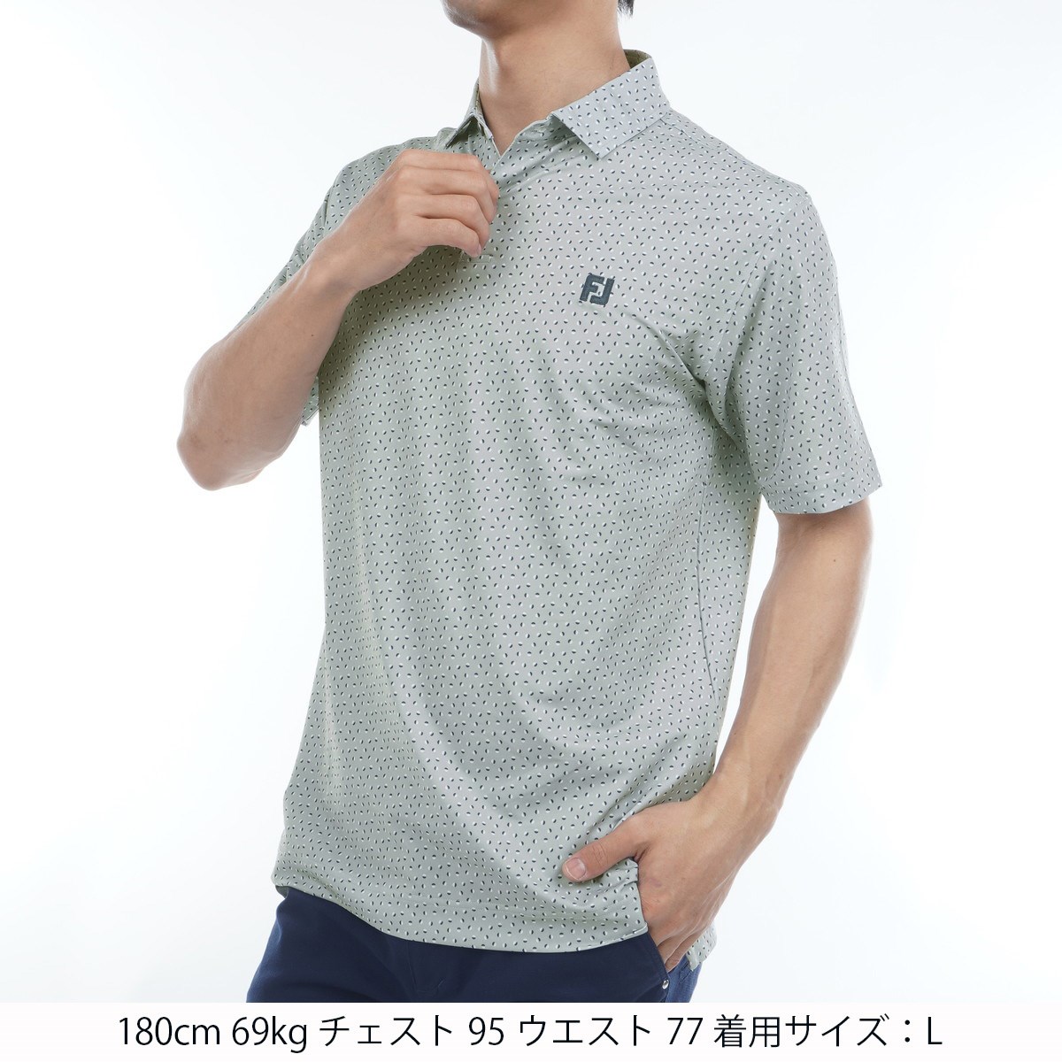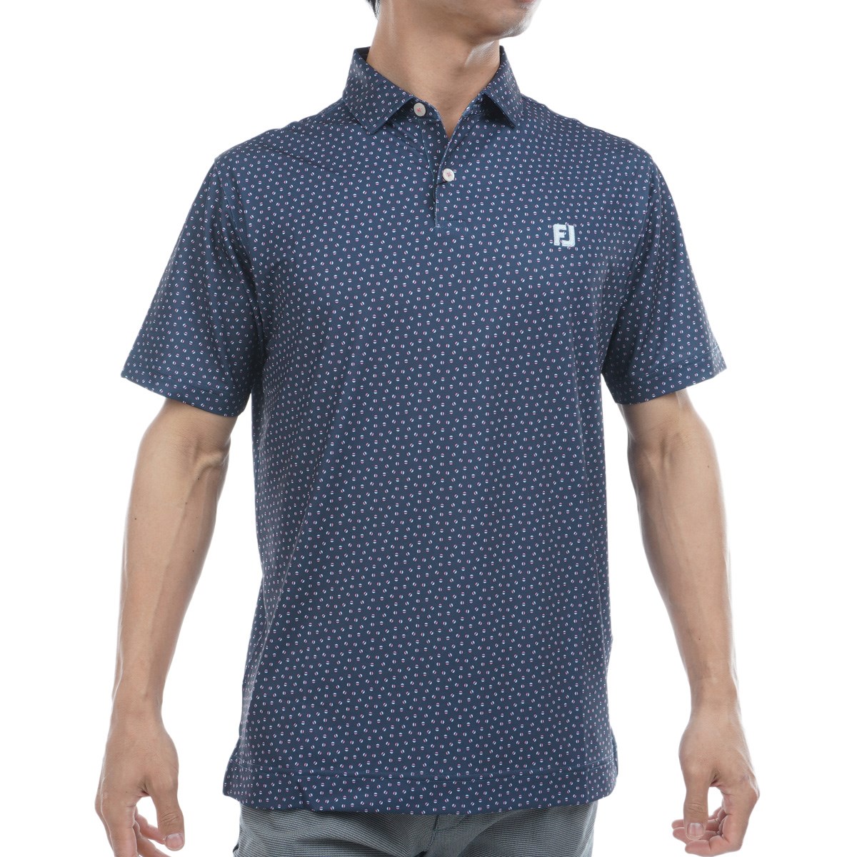 フットジョイ Foot Joy ストレッチ ボールプリント半袖ポロシャツ L グレー