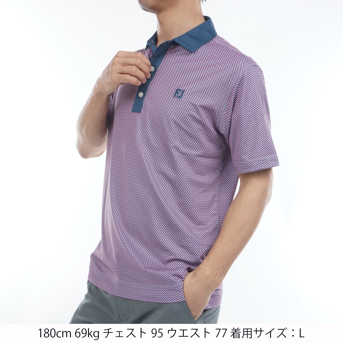 フットジョイ Foot Joy ストレッチ ダイアゴナル半袖クレリックポロシャツ L ダークデニム