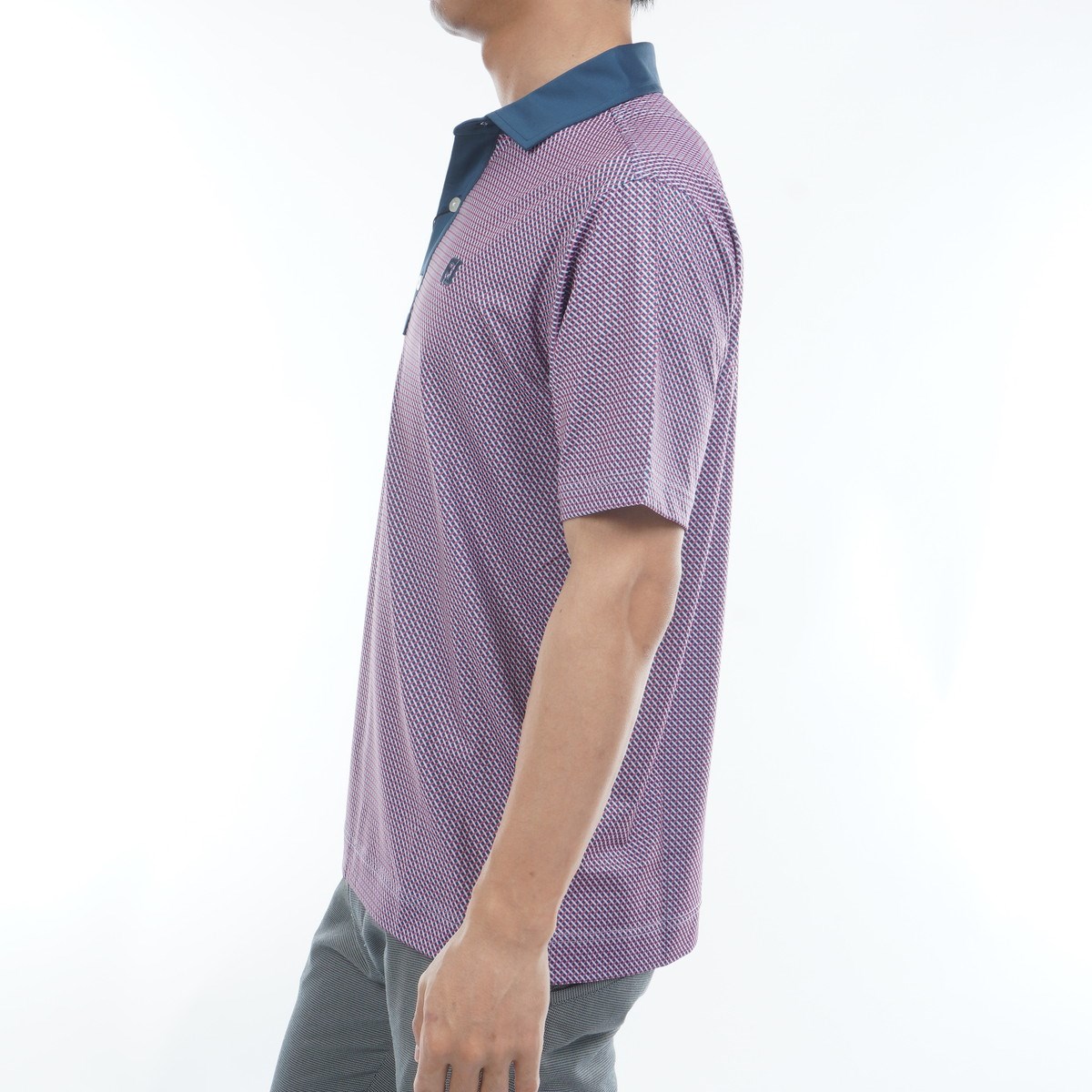高ストレッチ素材を使用し快適な着心地と動きやすさを提供する半袖ポロシャツ。