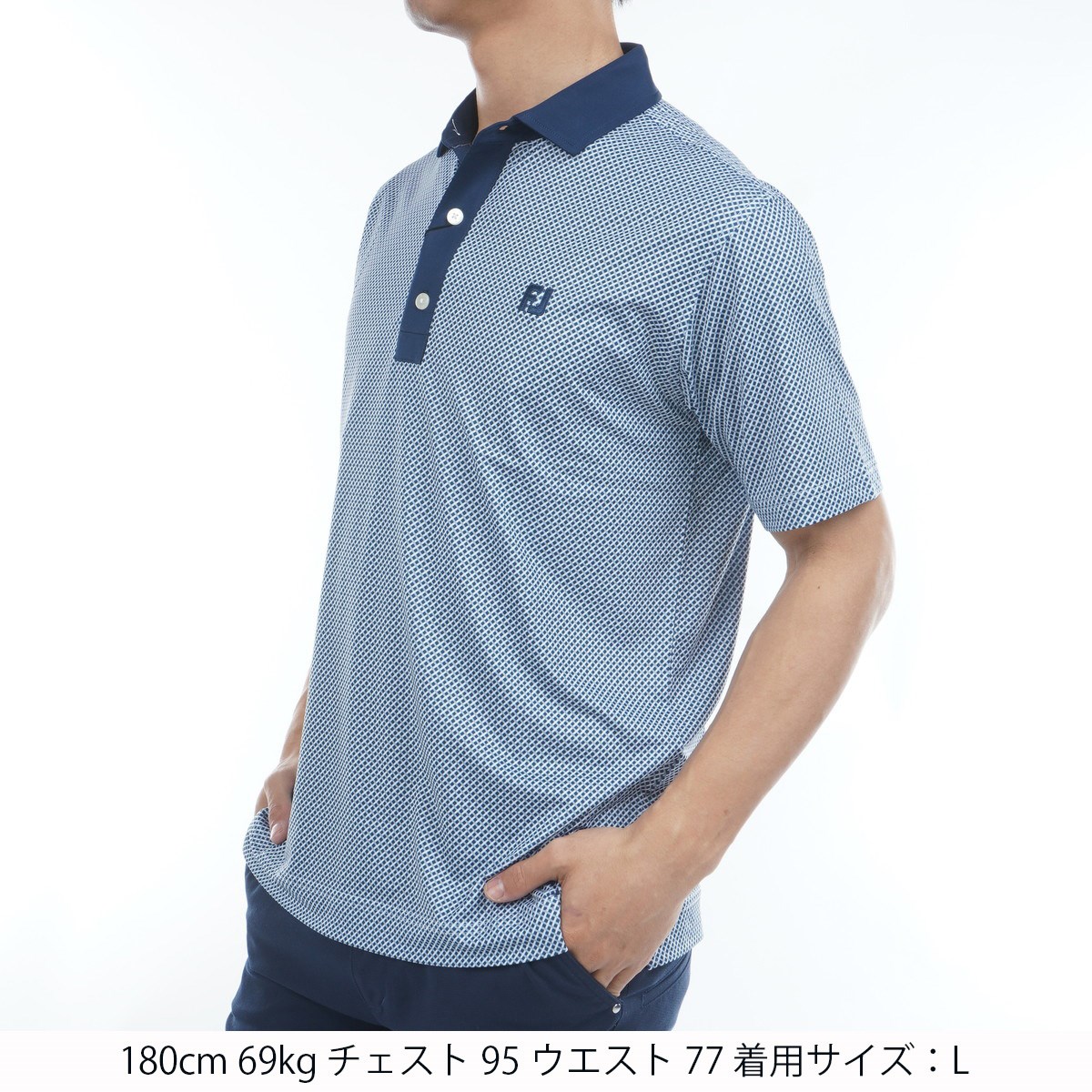 フットジョイ Foot Joy ストレッチ ダイアゴナル半袖クレリックポロシャツ XL ネイビー