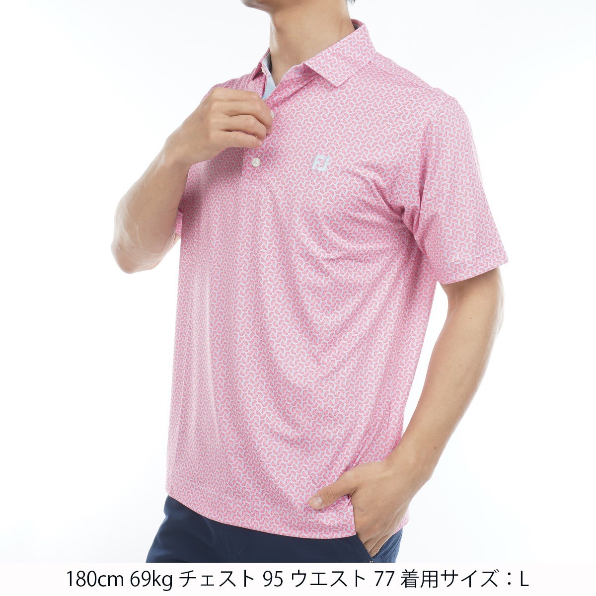 フットジョイ Foot Joy ストレッチ シトラスプリント半袖ポロシャツ XXL ピンクレモネード
