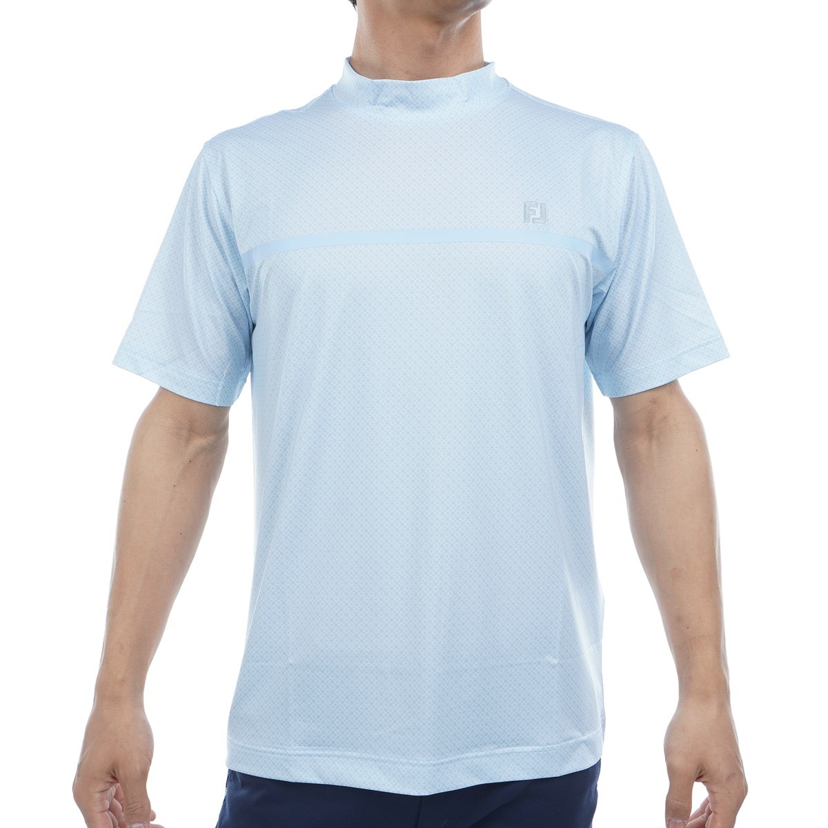 フットジョイ Foot Joy ストレッチ ループプリントモックネック半袖シャツ M ホワイト/スカイウェイ