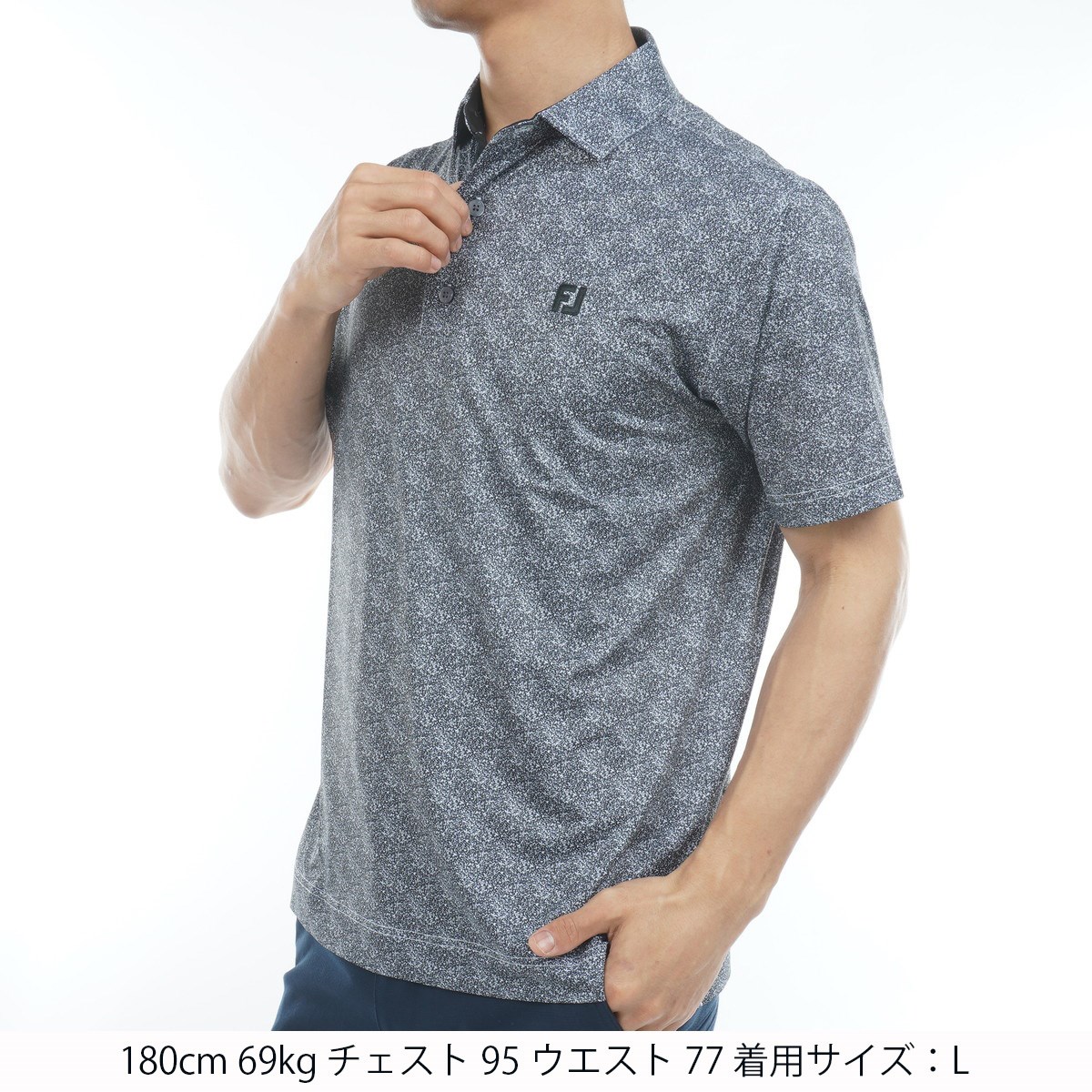 フットジョイ Foot Joy ストレッチ スプレーミストプリント半袖ポロシャツ XXL ブラック/フリント