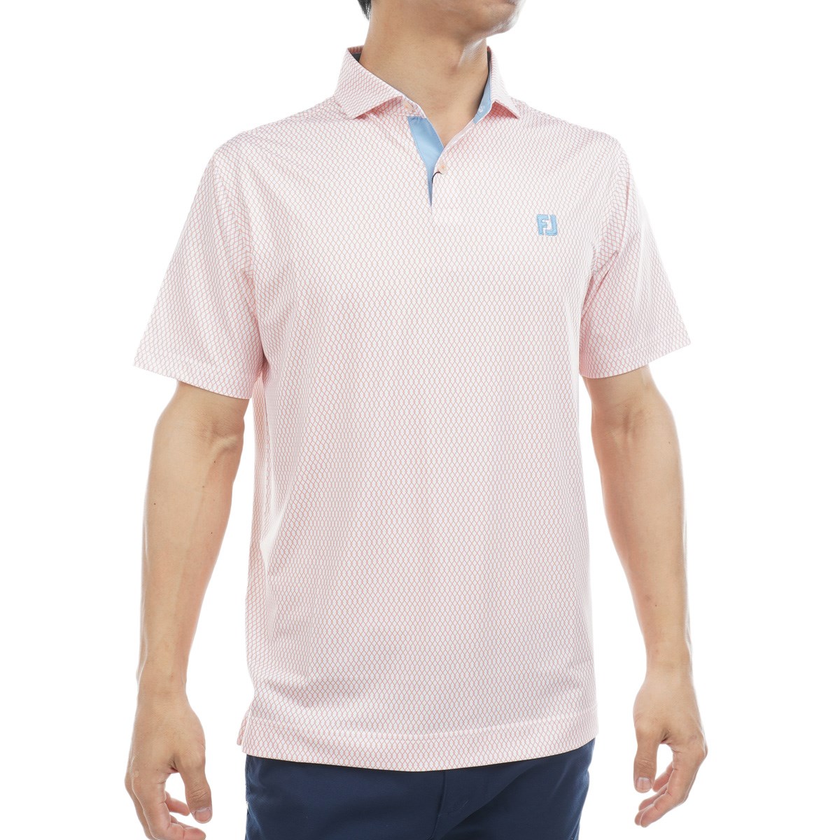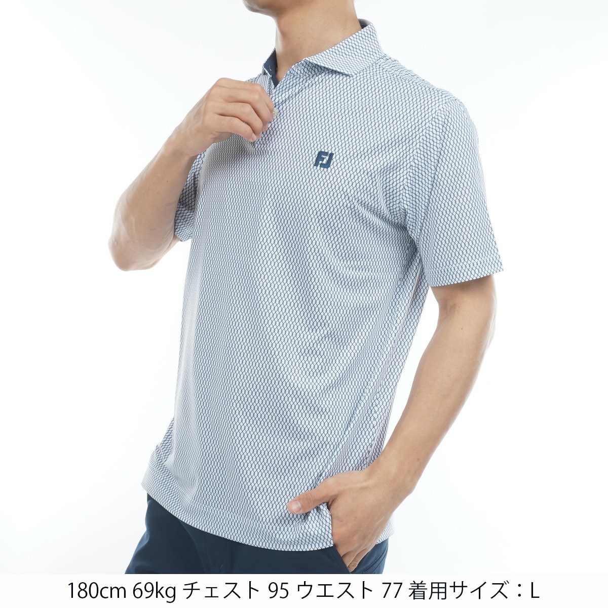 フットジョイ Foot Joy ストレッチ ダイヤ柄半袖ワイドカラーポロシャツ XL ネイビー