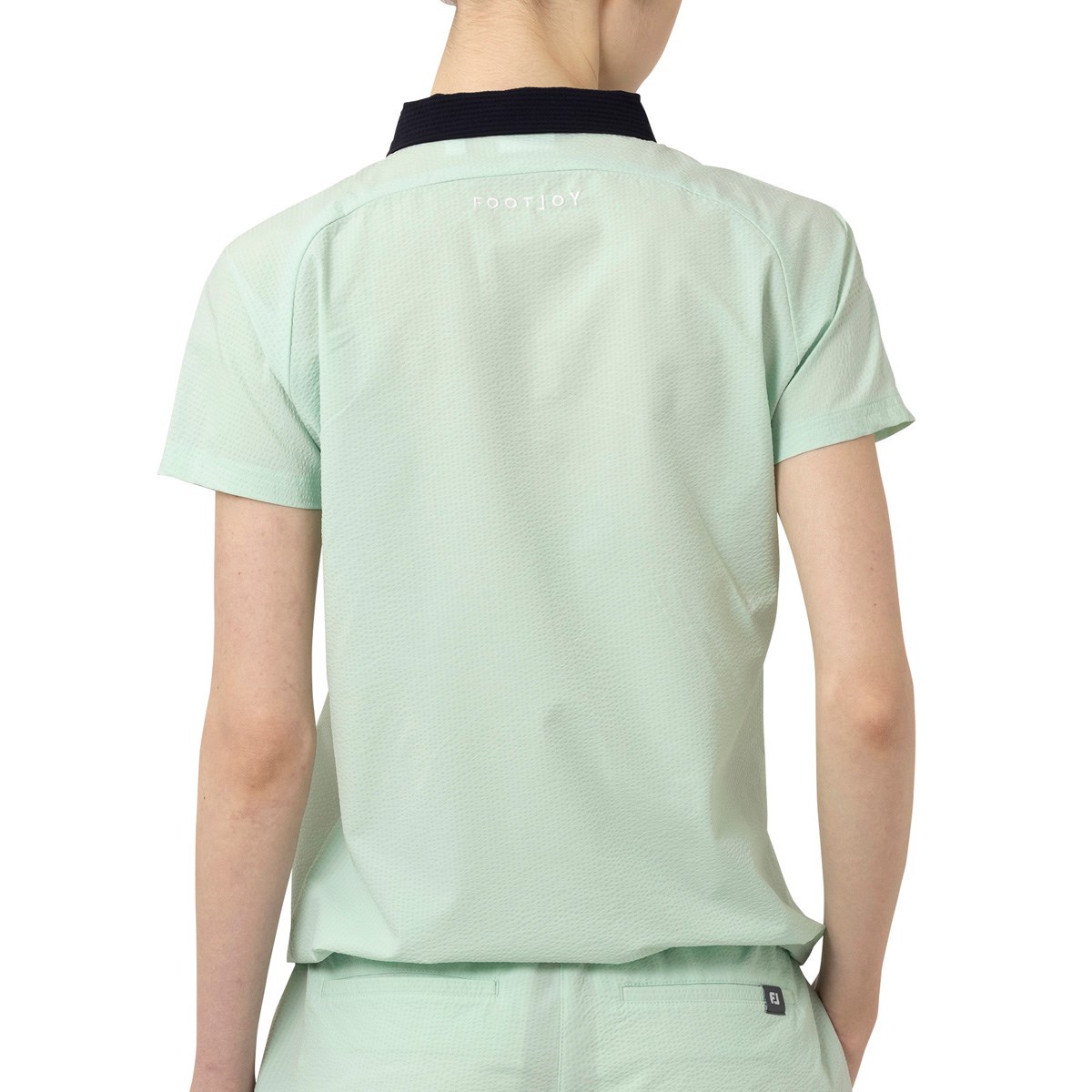 撥水性、ストレッチ性、UVケア機能を備えたシアサッカー素材を採用した半袖ポロシャツ。