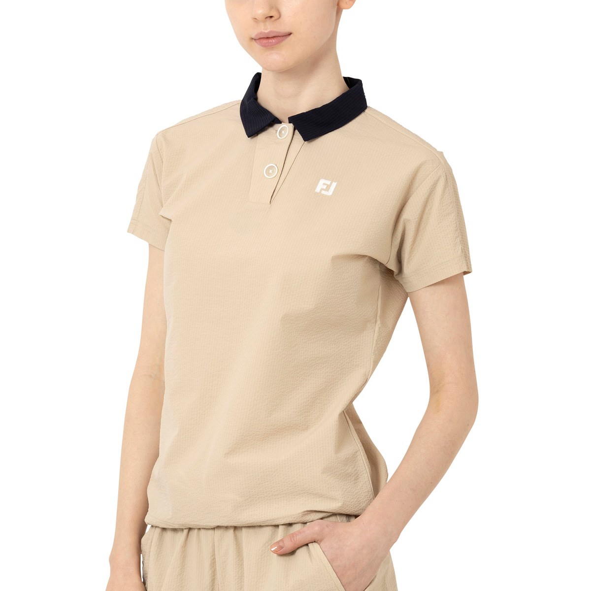 フットジョイ Foot Joy ストレッチ シアサッカー半袖ポロシャツ L ダークネイビー レディス