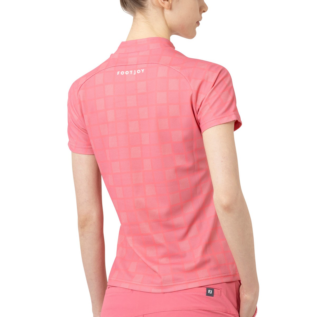フットジョイ Foot Joy ストレッチ スクエアチェックモックネック半袖シャツ M ダークネイビー レディス