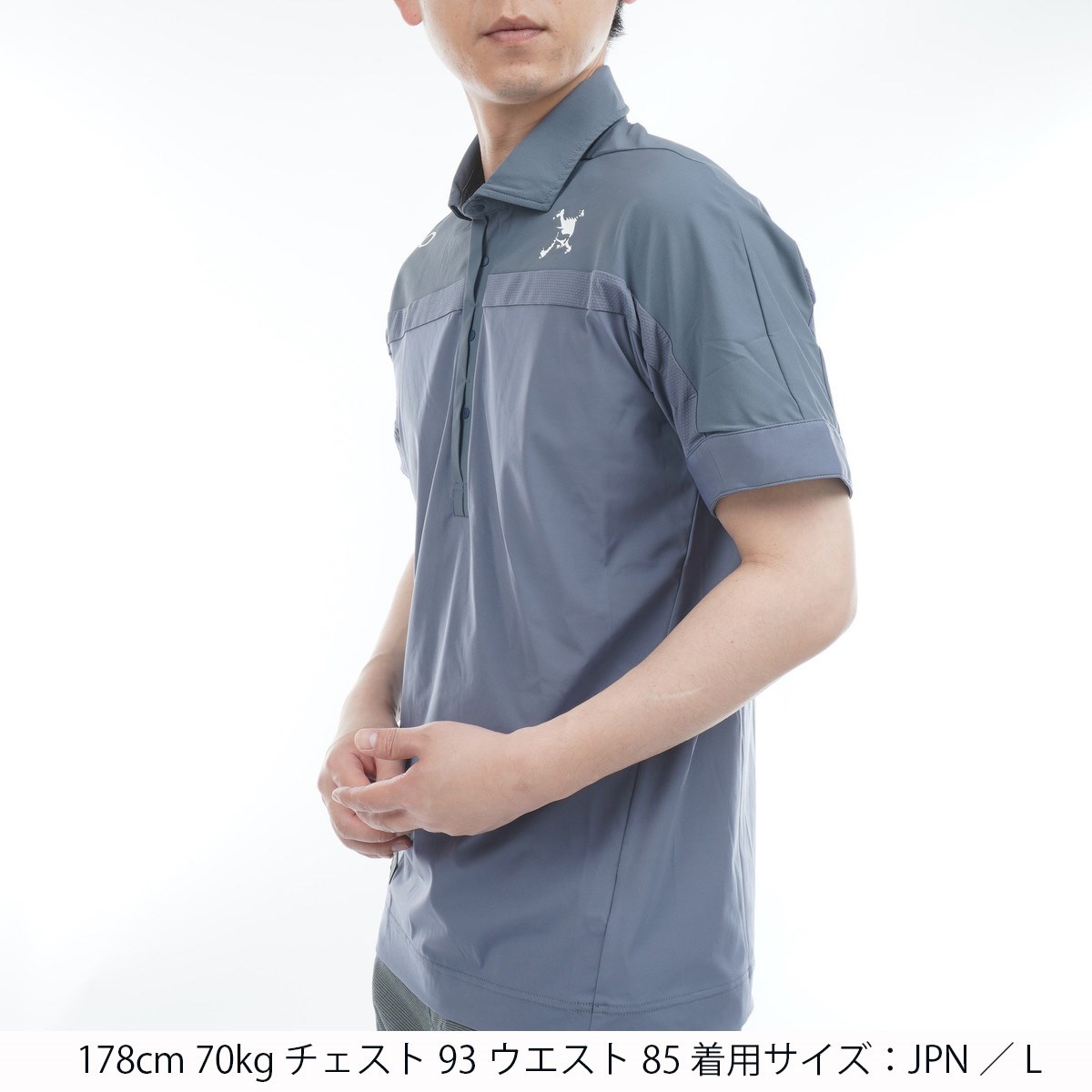 肌へのタッチが柔らかいハイゲージのナイロンを身生地に、肩部分には吸水性とUPF値が高く、ドライタッチなナイロントリコットを組み合わせたポロシャツは快適なゴルフシーンをサポート。