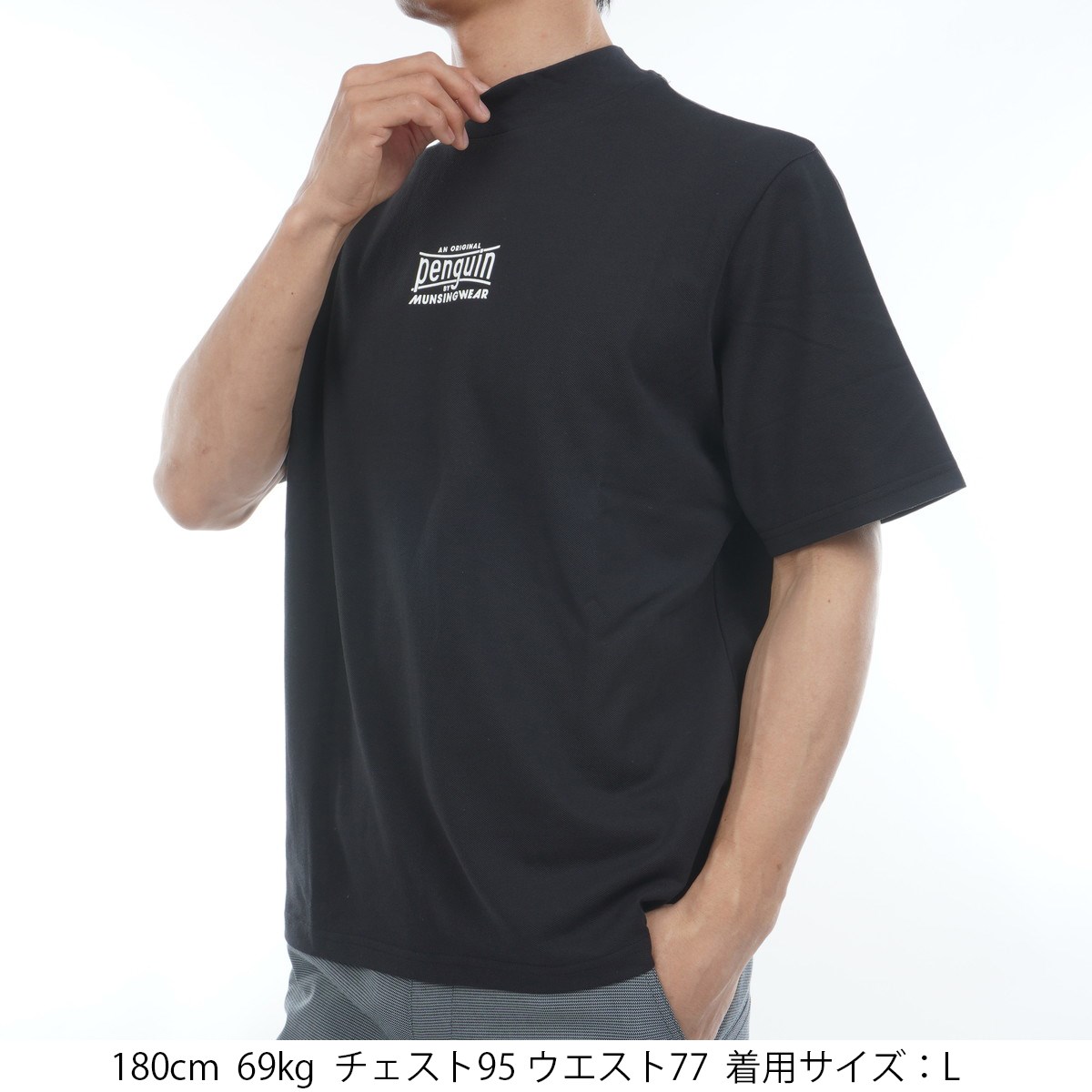 ペンギン バイ マンシングウェア Penguin by Munsingwear グラフィック モックネック半袖シャツ M ブラック 00