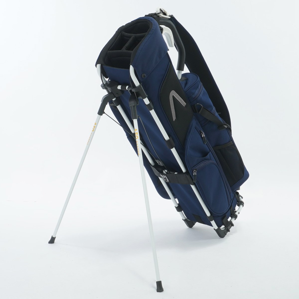 ゴルフを愛するメンバーが一丸となり、使い心地の良さを追求したキャディバッグ。軽くて頑丈なアルミフレームが車のトランクに積み重ねたときの型崩れや変形を防いでくれる。独自のワイヤー構造により、スタンドキャディバッグの開閉スイッチを底面から手元に移動。