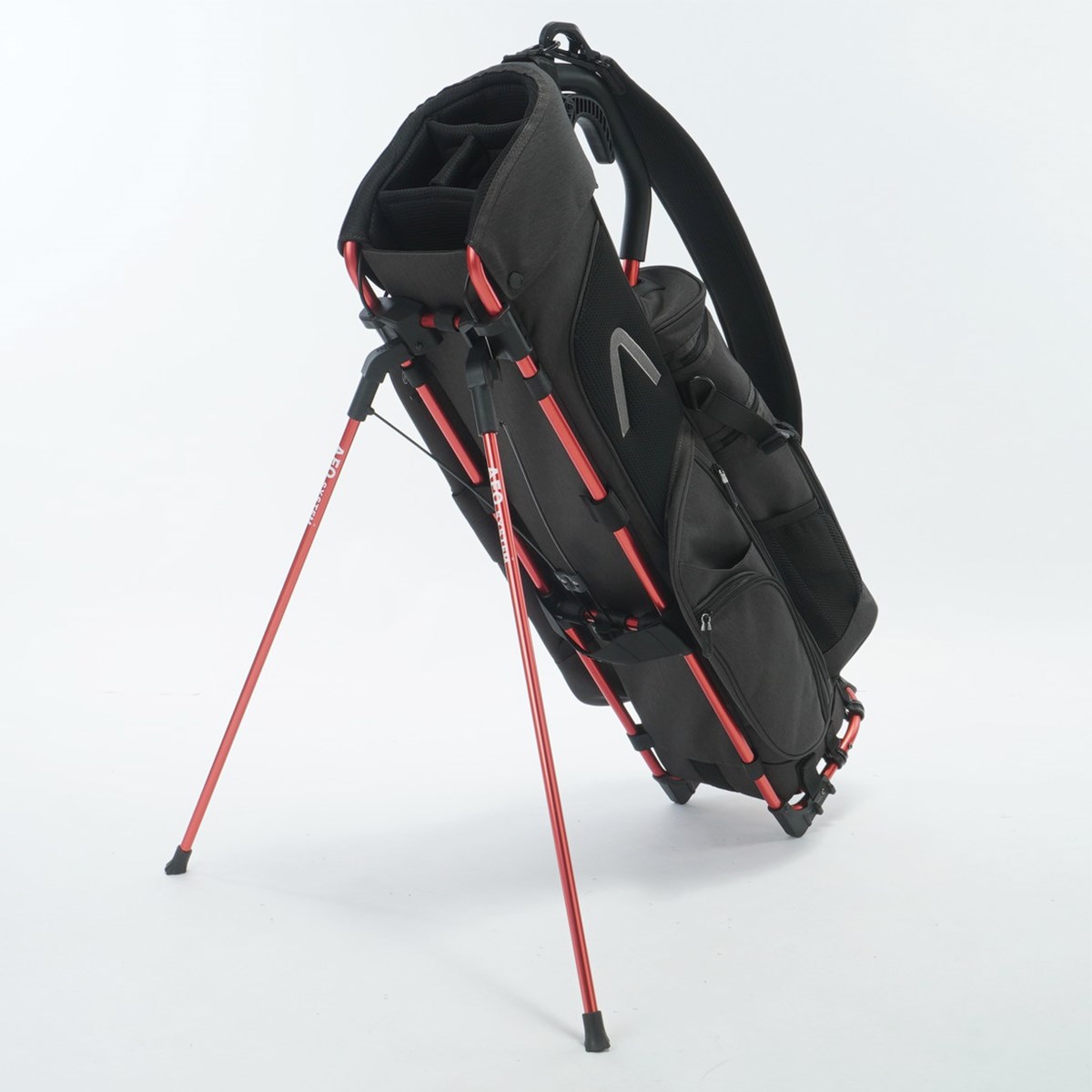 ゴルフを愛するメンバーが一丸となり、使い心地の良さを追求したキャディバッグ。軽くて頑丈なアルミフレームが車のトランクに積み重ねたときの型崩れや変形を防いでくれる。独自のワイヤー構造により、スタンドキャディバッグの開閉スイッチを底面から手元に移動。