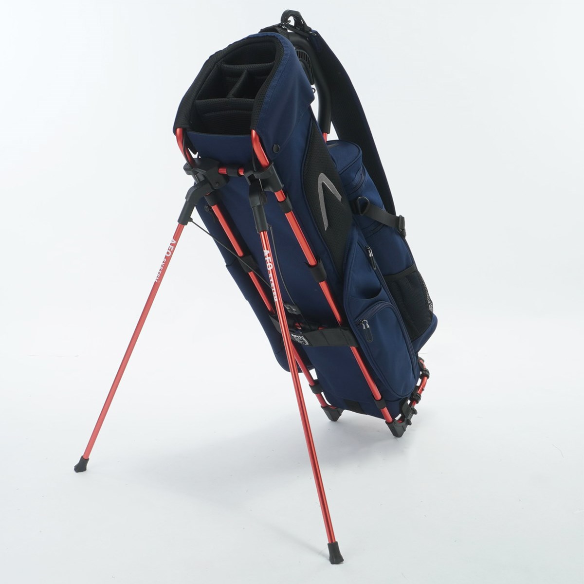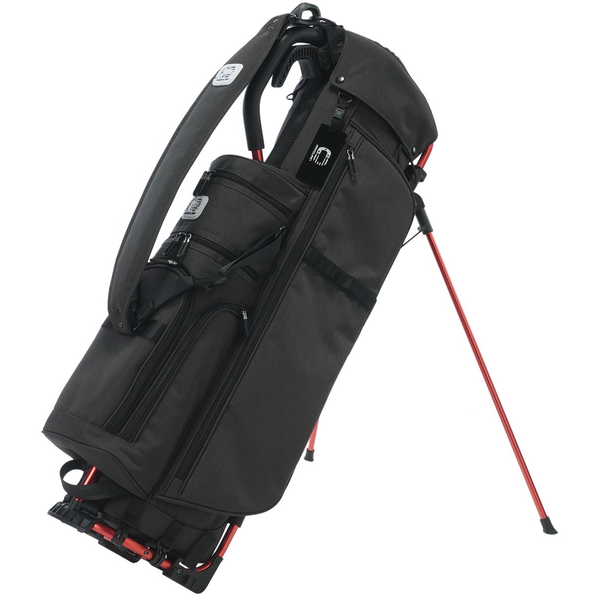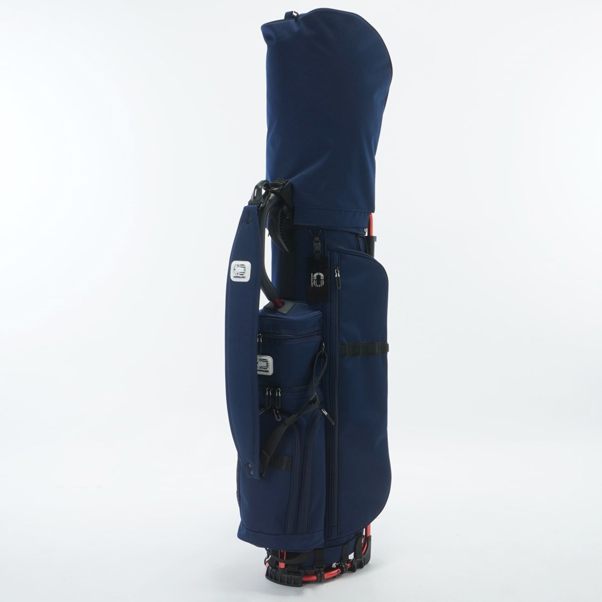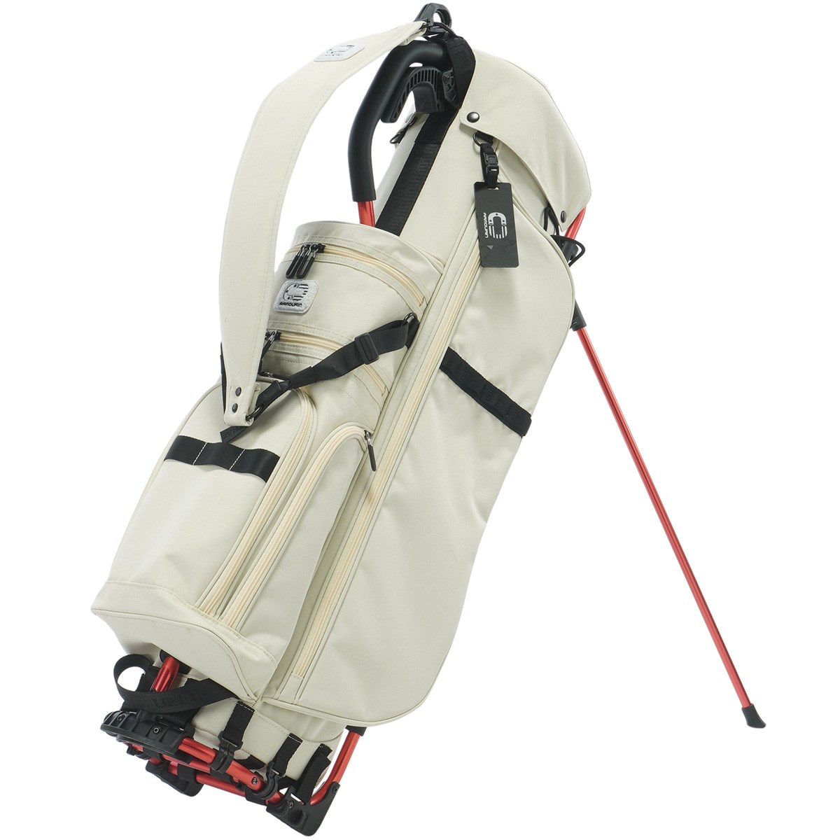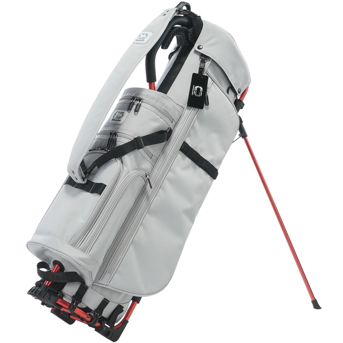ゴルフを愛するメンバーが一丸となり、使い心地の良さを追求したキャディバッグ。軽くて頑丈なアルミフレームが車のトランクに積み重ねたときの型崩れや変形を防いでくれる。独自のワイヤー構造により、スタンドキャディバッグの開閉スイッチを底面から手元に移動。
