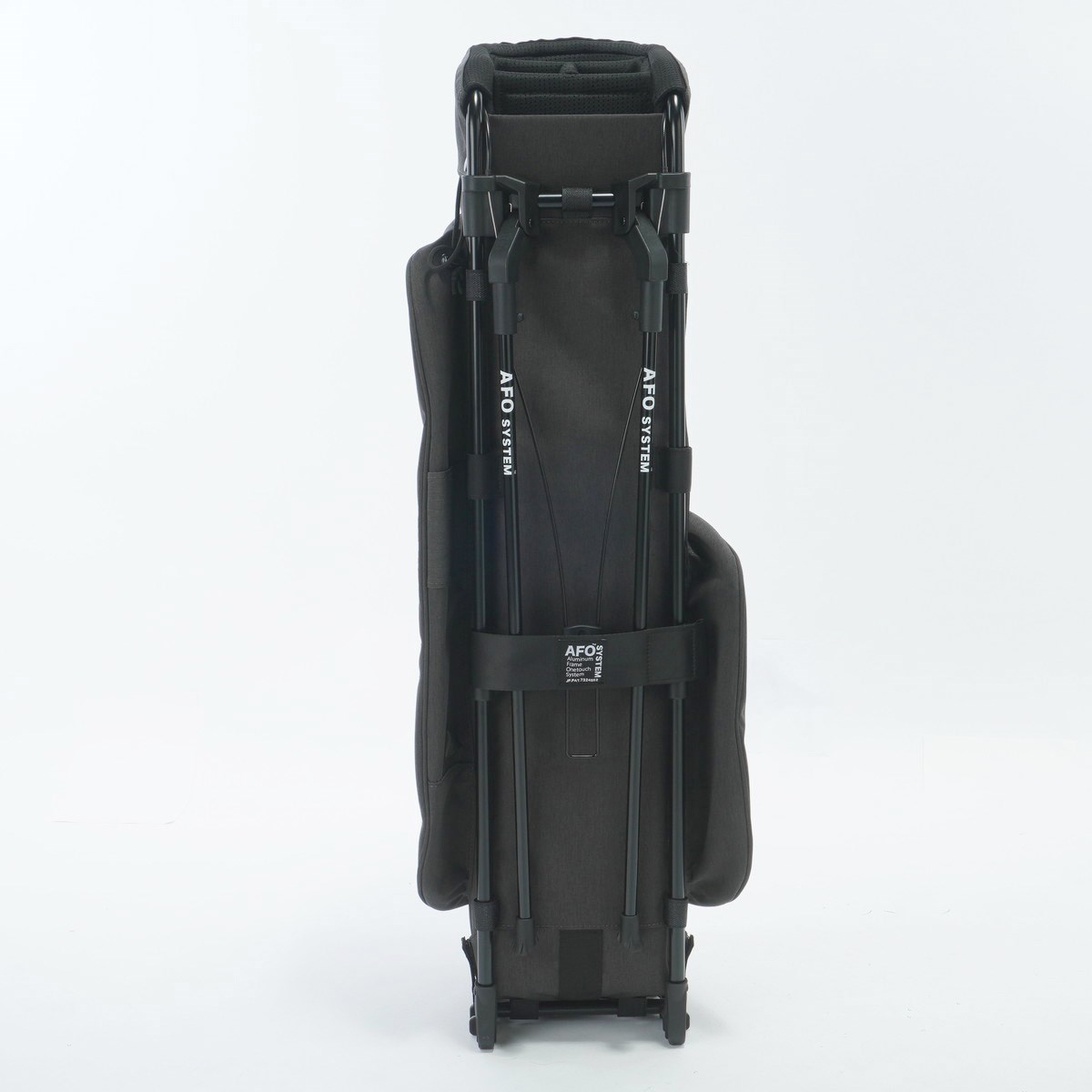 従来のプッシュ式スタンドキャディバッグの不便さを解消するワンタッチ式スタンド。