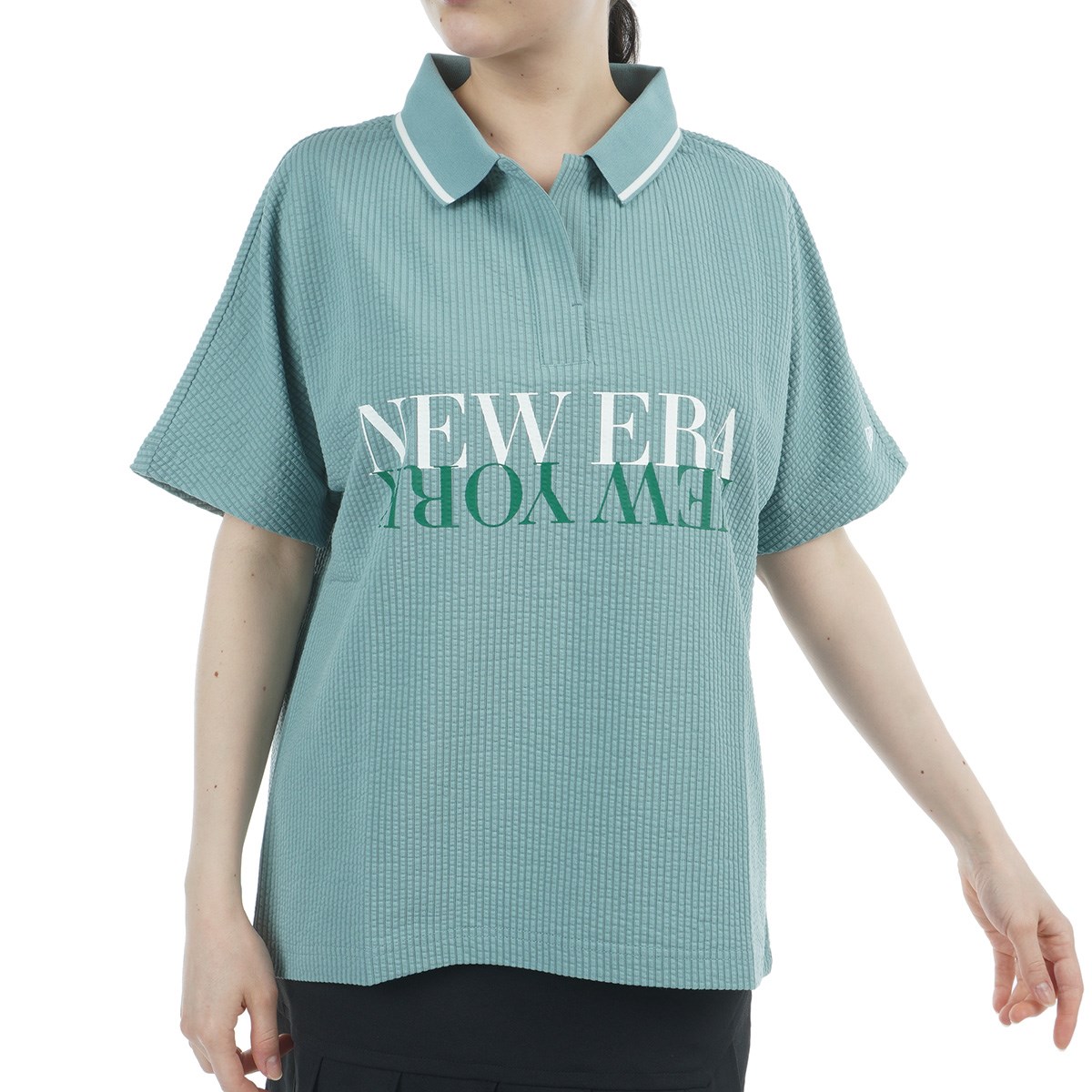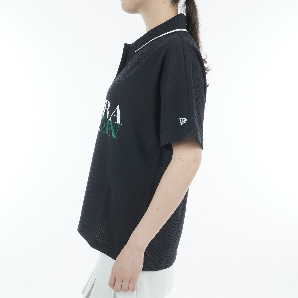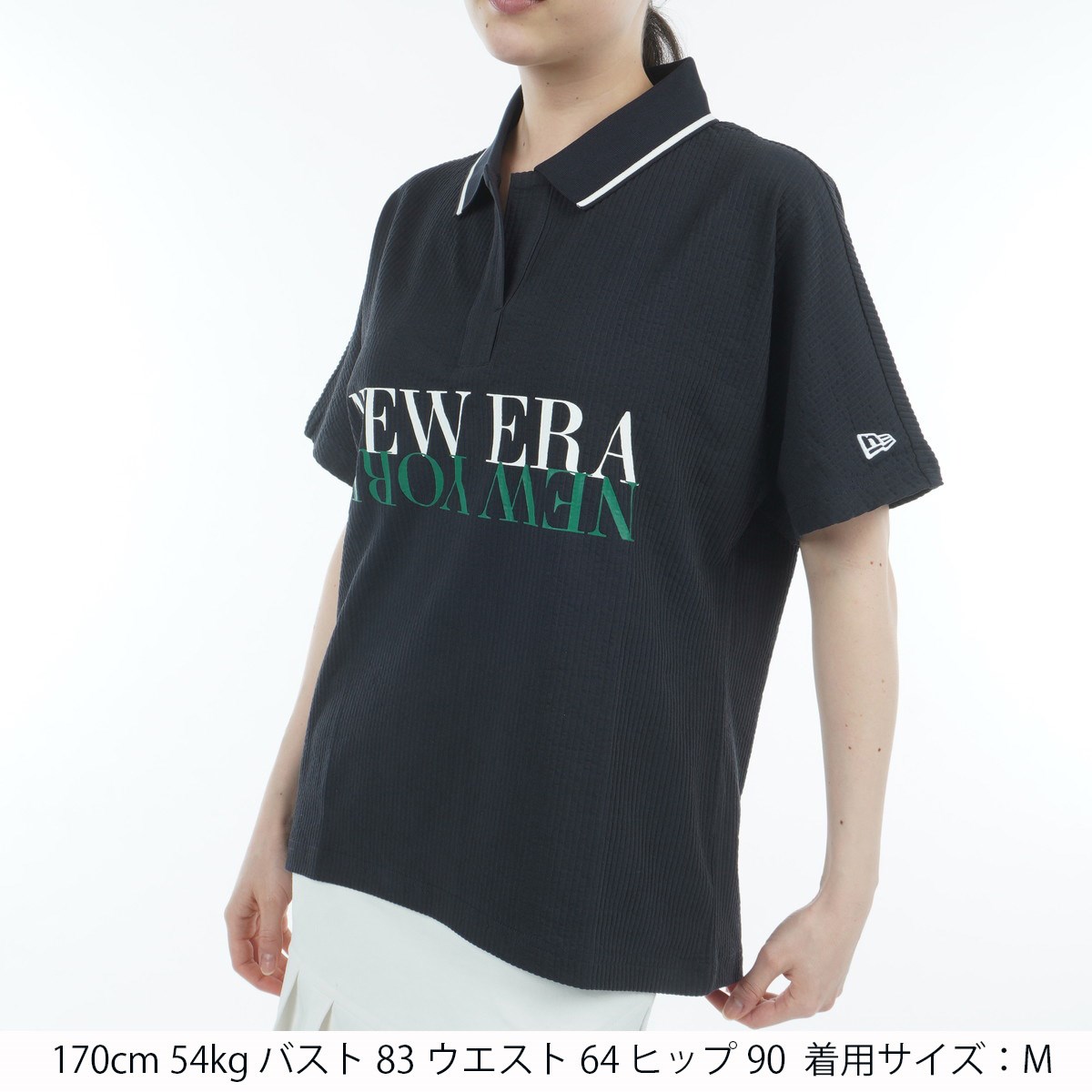 ニューエラ NEW ERA GOLF GFW PL ストレッチ シアサッカー スキッパー半袖シャツ L ネイビー レディス