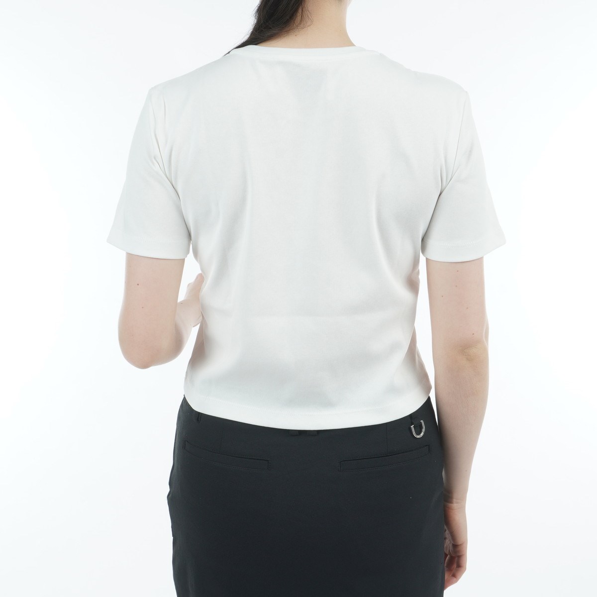 女性向けのシルエットに仕上げた半袖Tシャツ。
