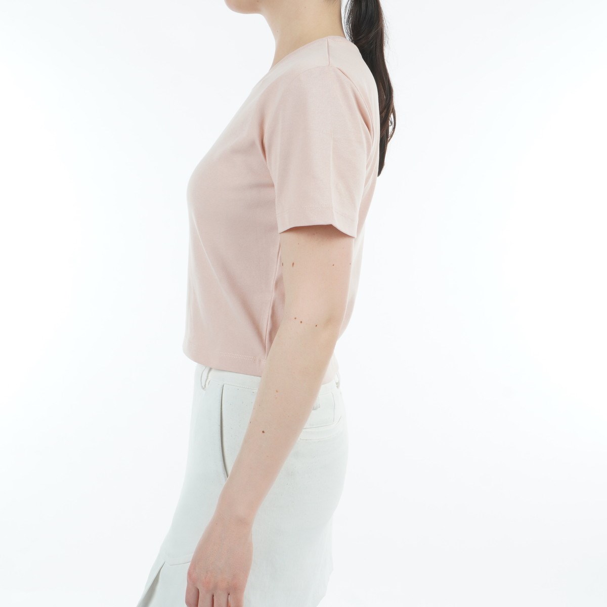 女性向けのシルエットに仕上げた半袖Tシャツ。