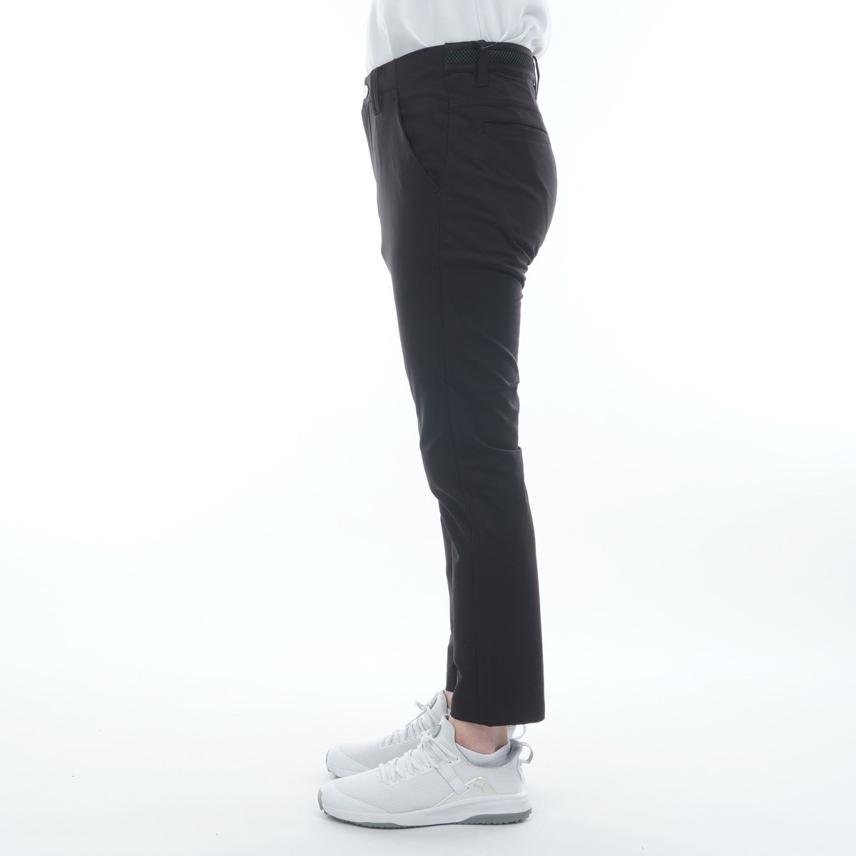 裾上げ済みの9分丈パンツは縦・横の4WAYにストレッチが効くので細身タイプでも程よいフィット感があり、軽さもポイント。