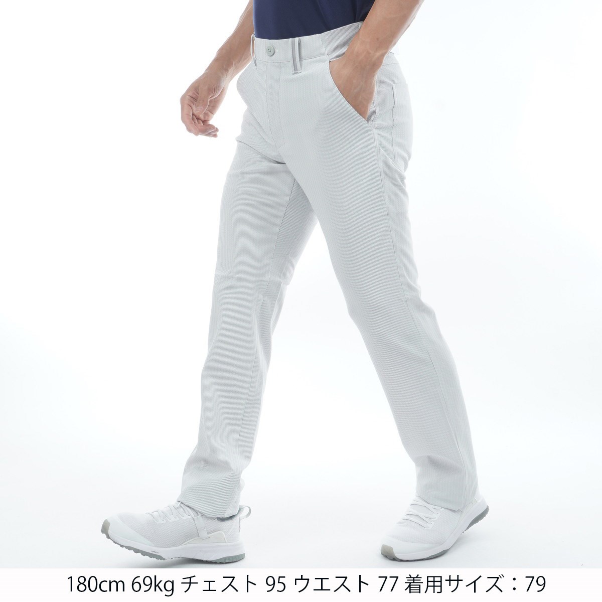 79:ウエスト82、ヒップ99、ワタリ巾31.2、股上24.5、裾巾18.7、股下85