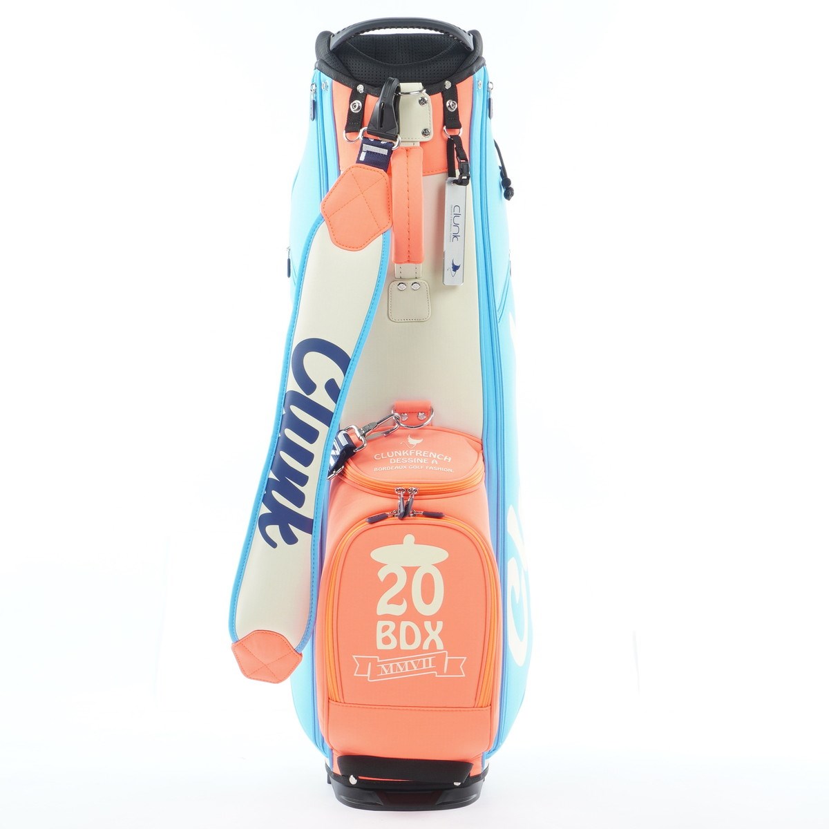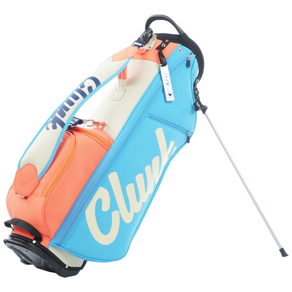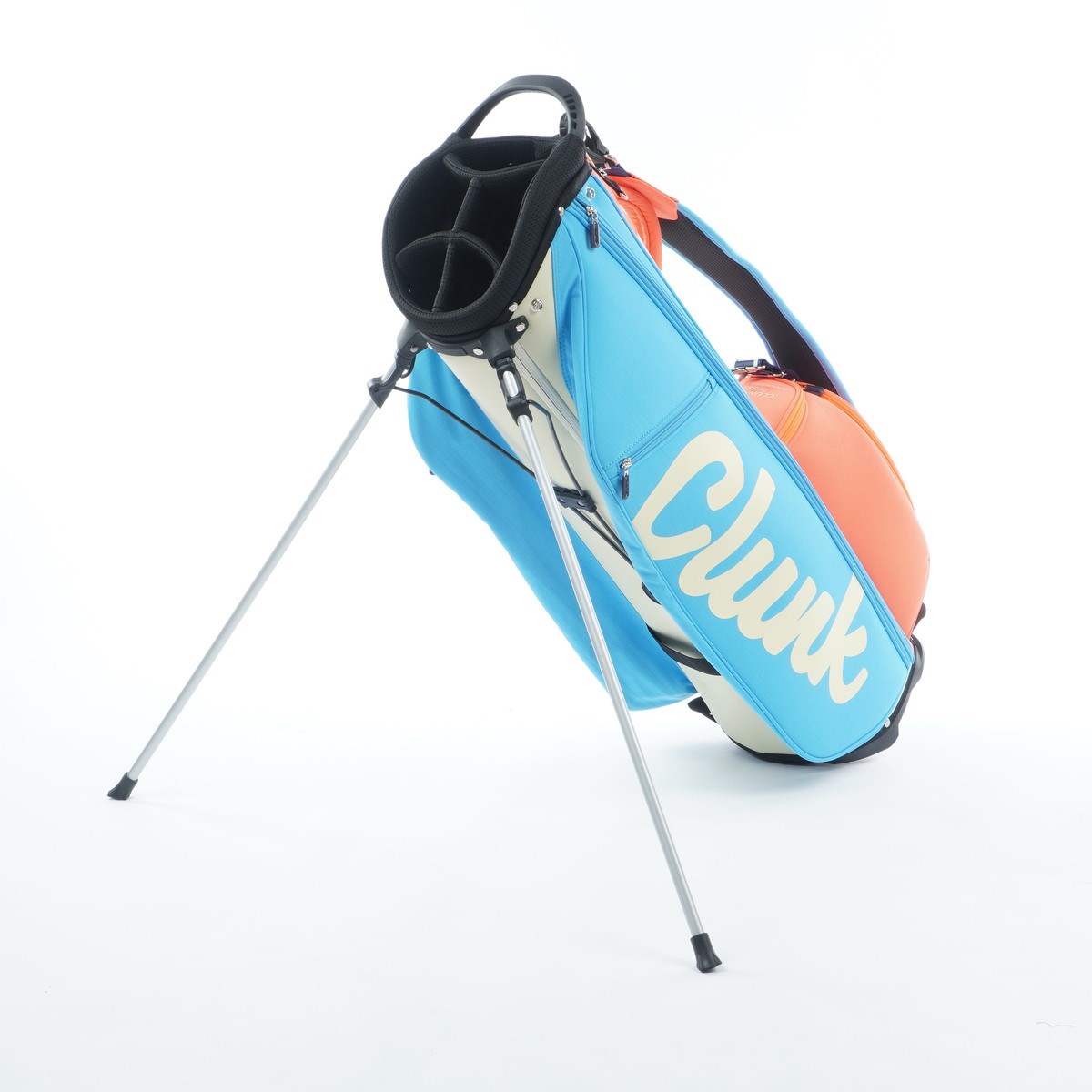 3色の配色カラーが目を惹くスタンドタイプのキャディバッグ。