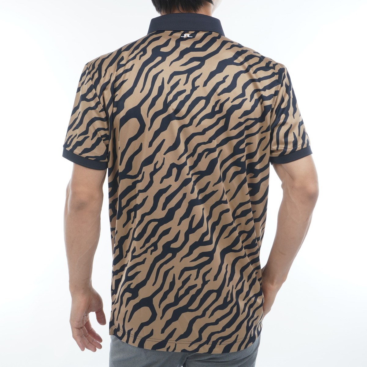 J.リンドバーグ J.LINDEBERG ストレッチ シーズンプリント袖ロゴ刺繍 半袖ポロシャツ 48 キャメル 042
