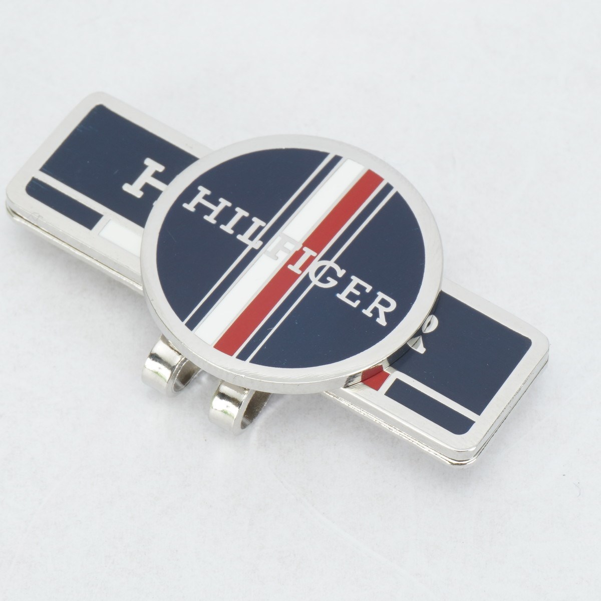ヒルフィガーロゴとグローバルストライプを採用した台座付きのキャップマーカー。