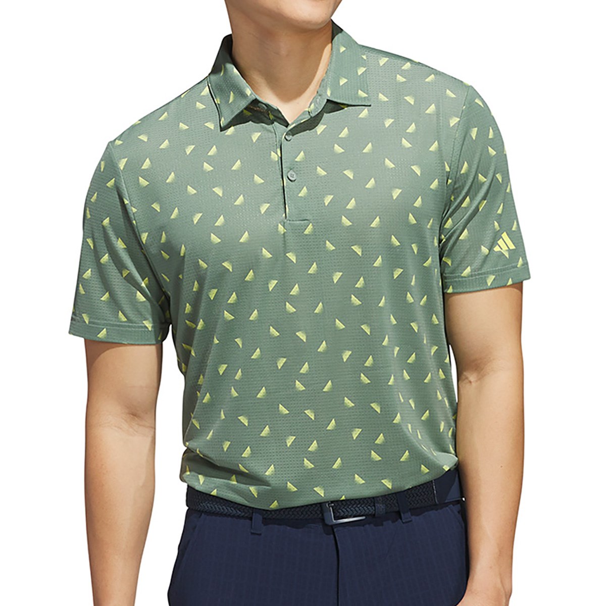 アディダス Adidas ストレッチ メッシュ総柄 半袖ポロシャツ J/2XL ホワイト/カレッジグリーン