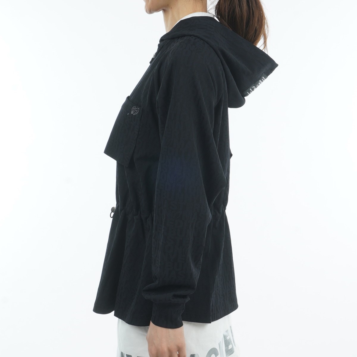 シルエットのアレンジやメリハリを与えられる、ウエストのドローコードを配置。