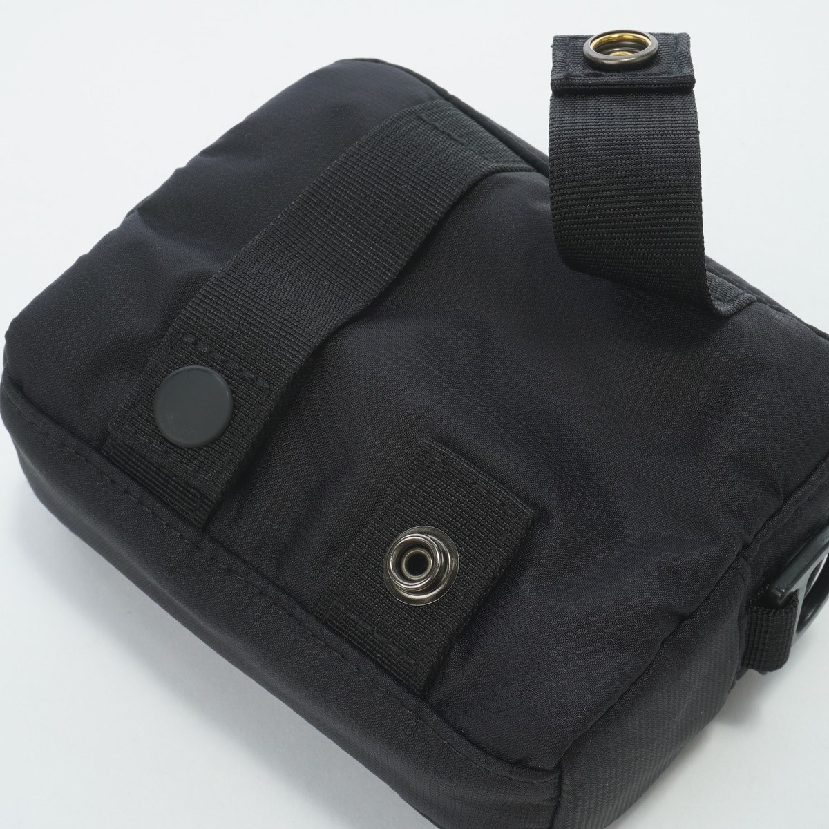 ・カバン背面にはベルトに通せるスナップを配し、ベルトに装着することでウエストポーチに。