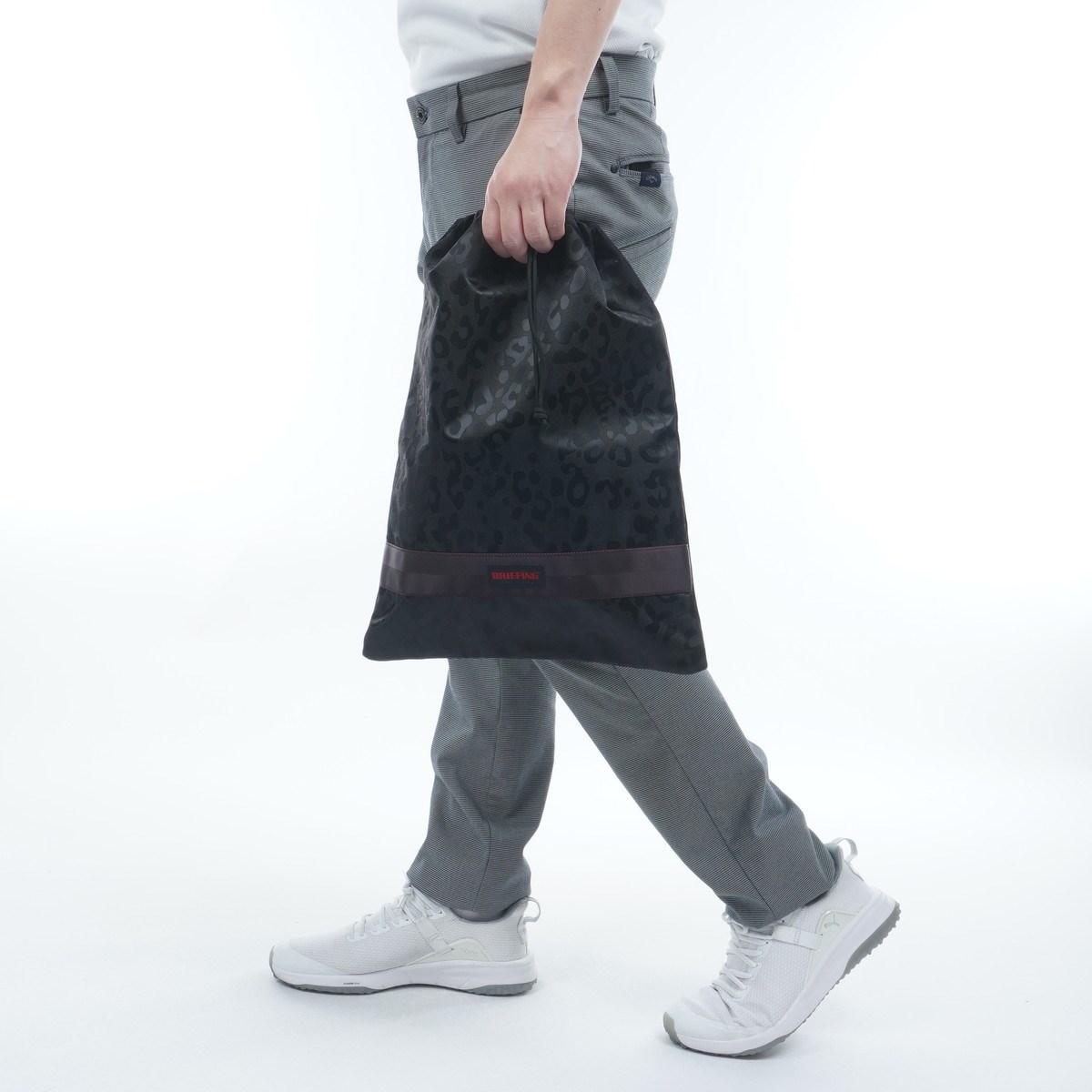 ブリーフィング BRIEFING ドローストリング レオパードジャガード ポーチ M ブラック 010