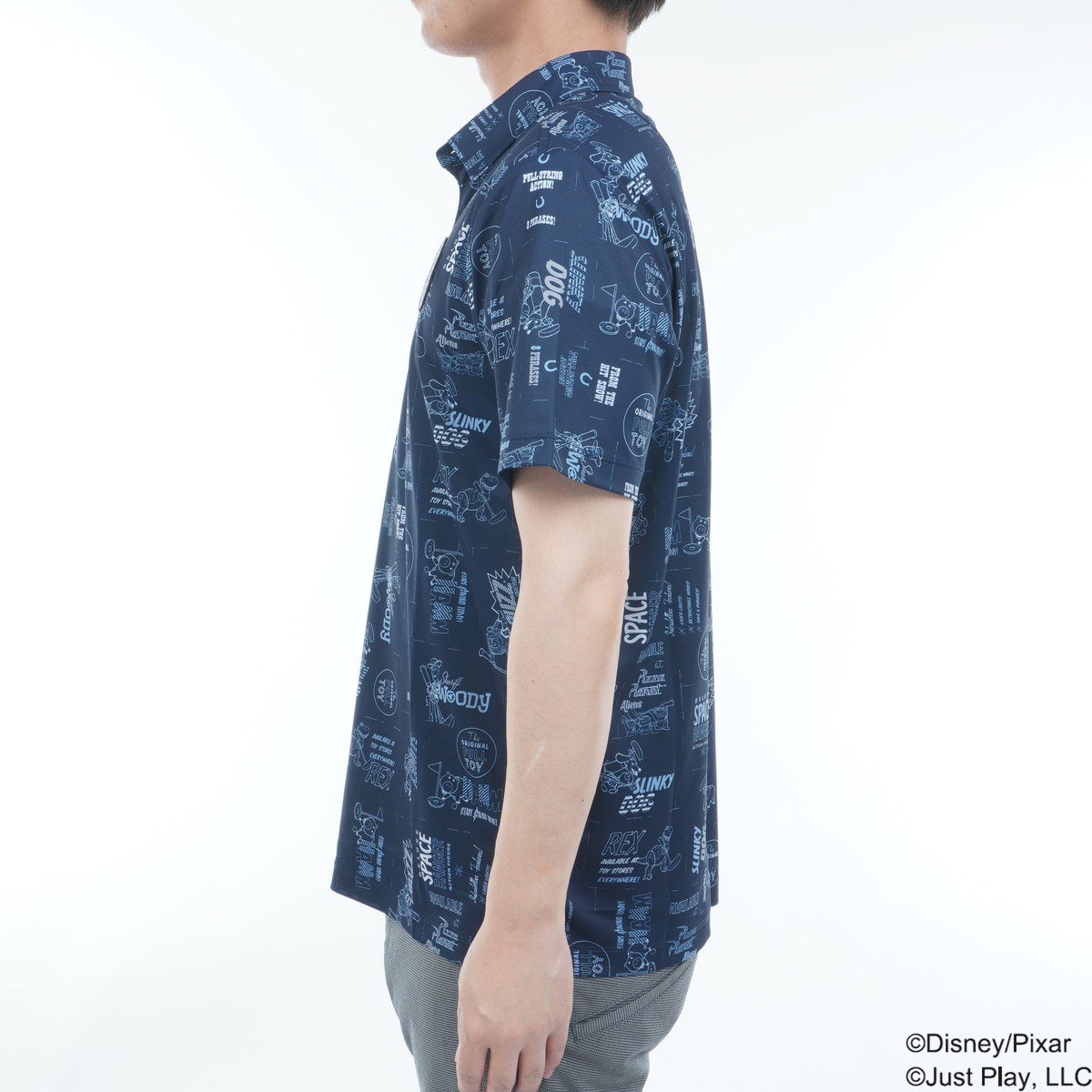 『トイ・ストーリー』のキャラクターなどを総柄でプリントしたシャツです。