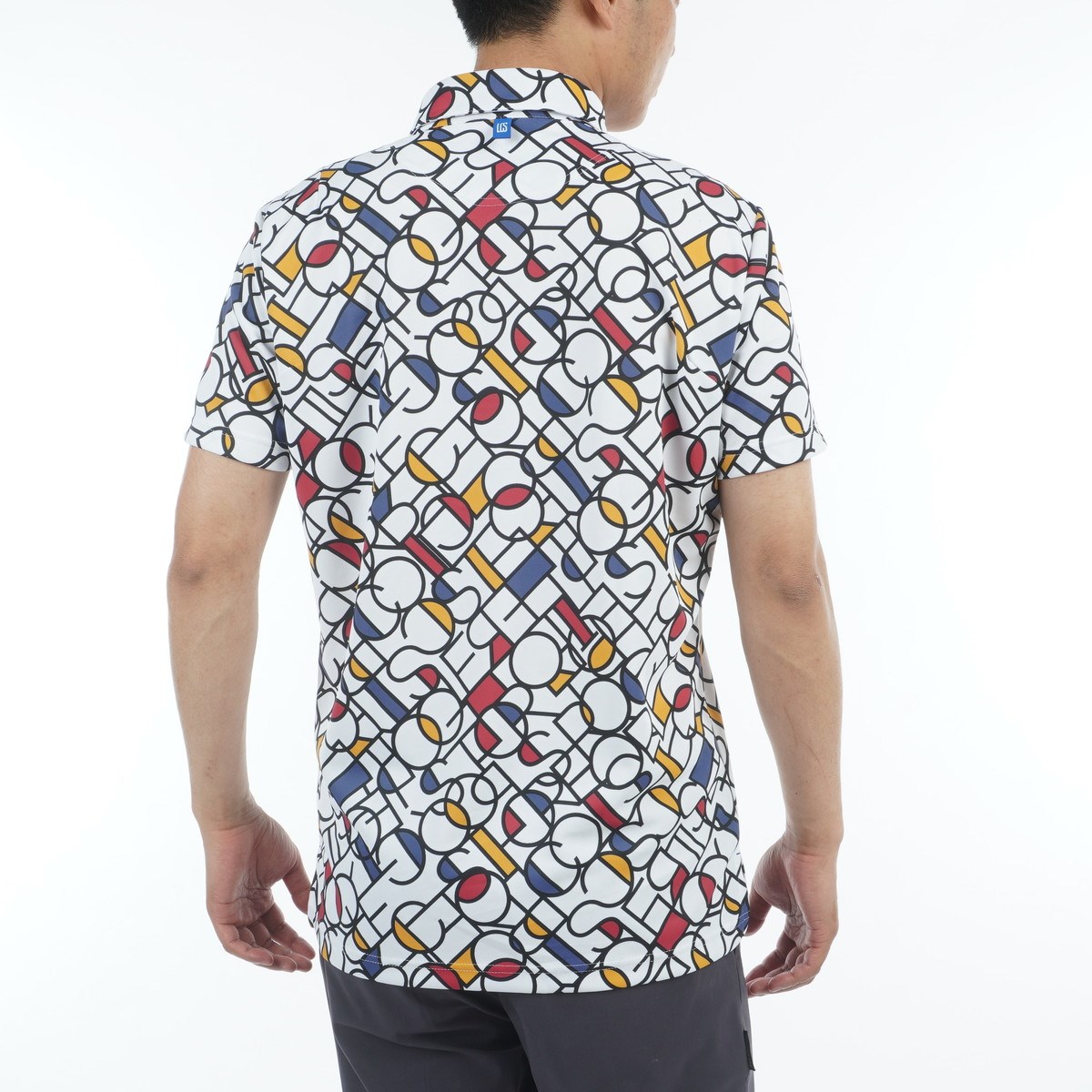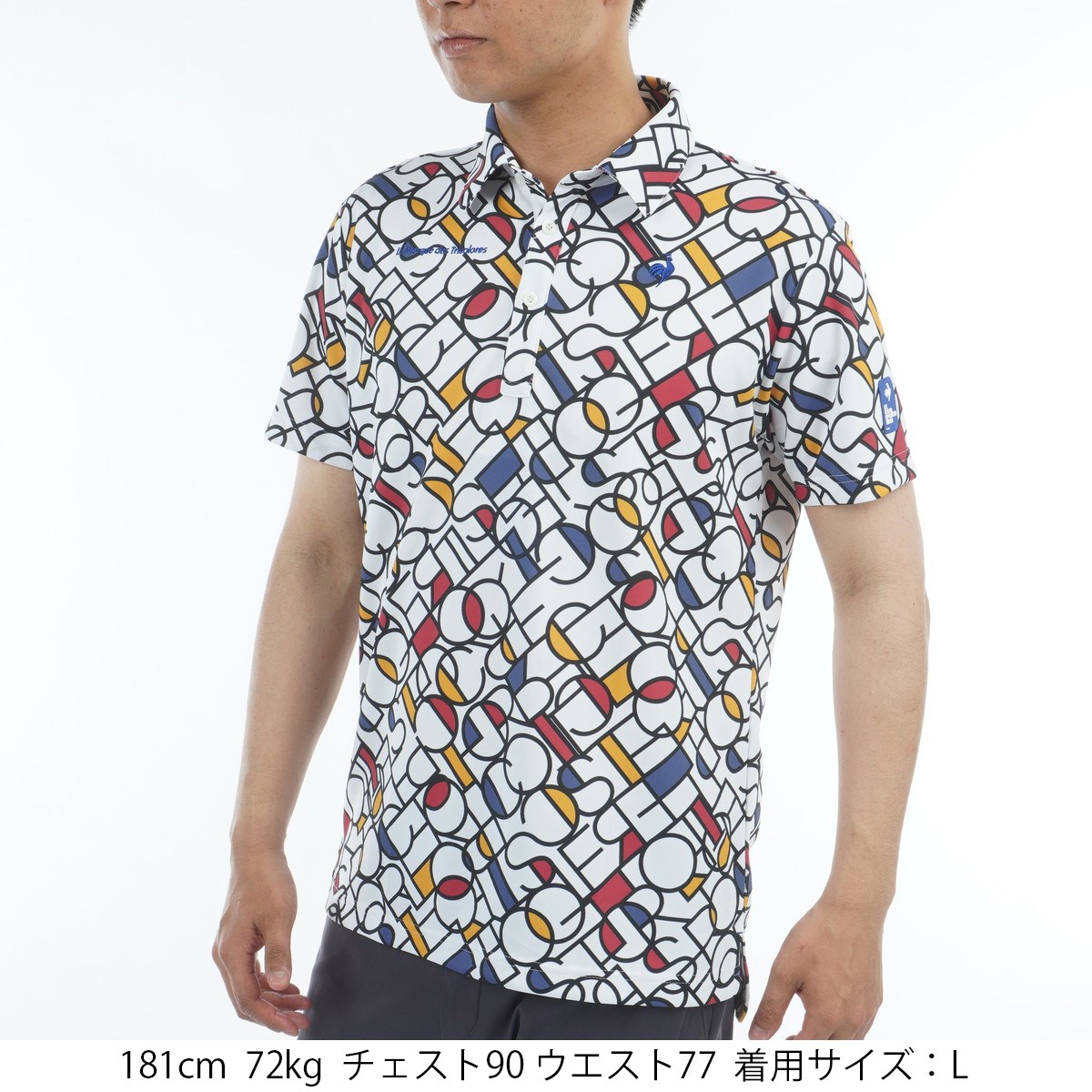 モンドリアン柄とロゴを組み合わせたポップなデザインが魅力の半袖ポロシャツ。