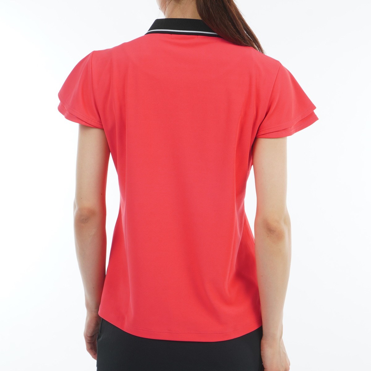 Aラインシルエットが女性らしい、半袖ポロポロシャツ。