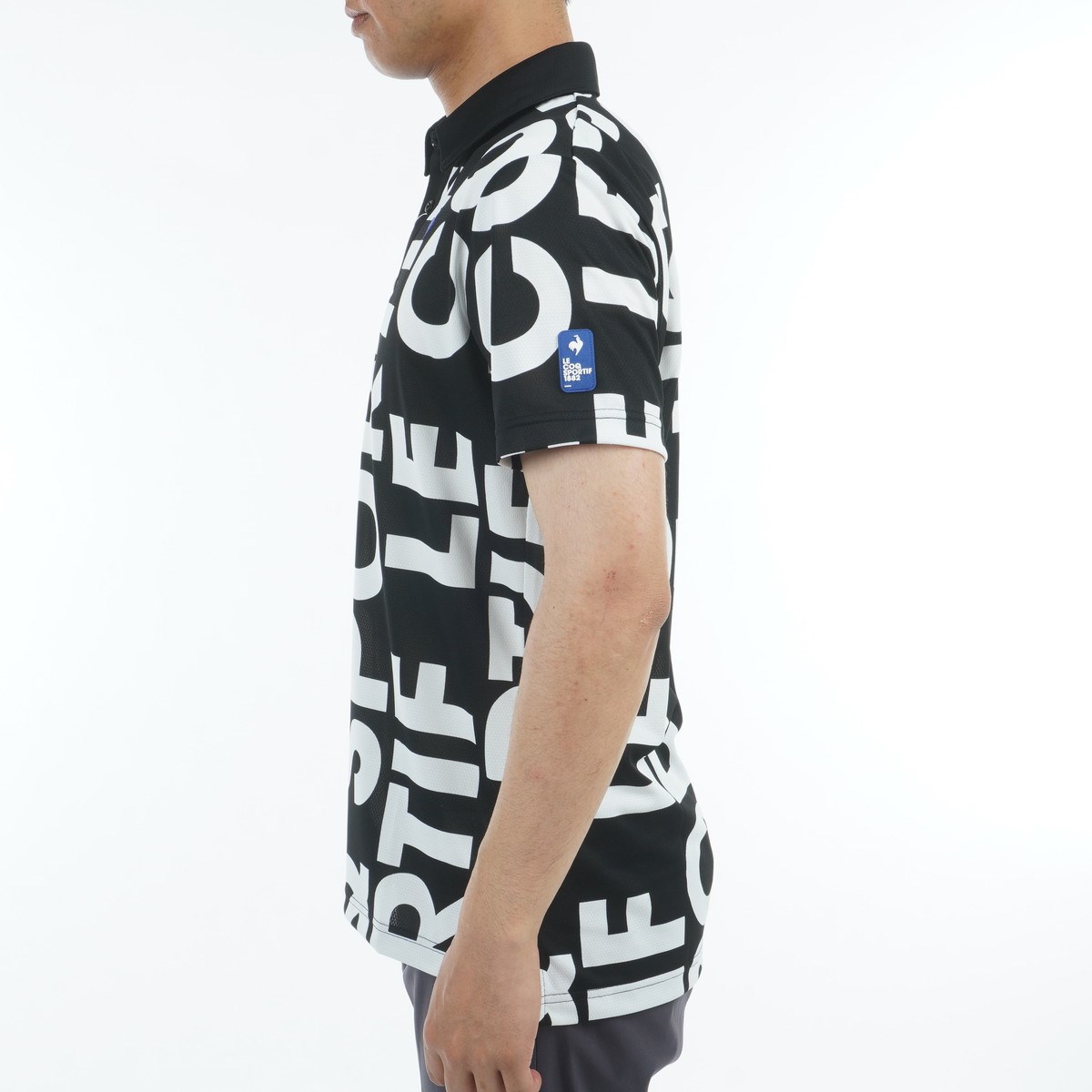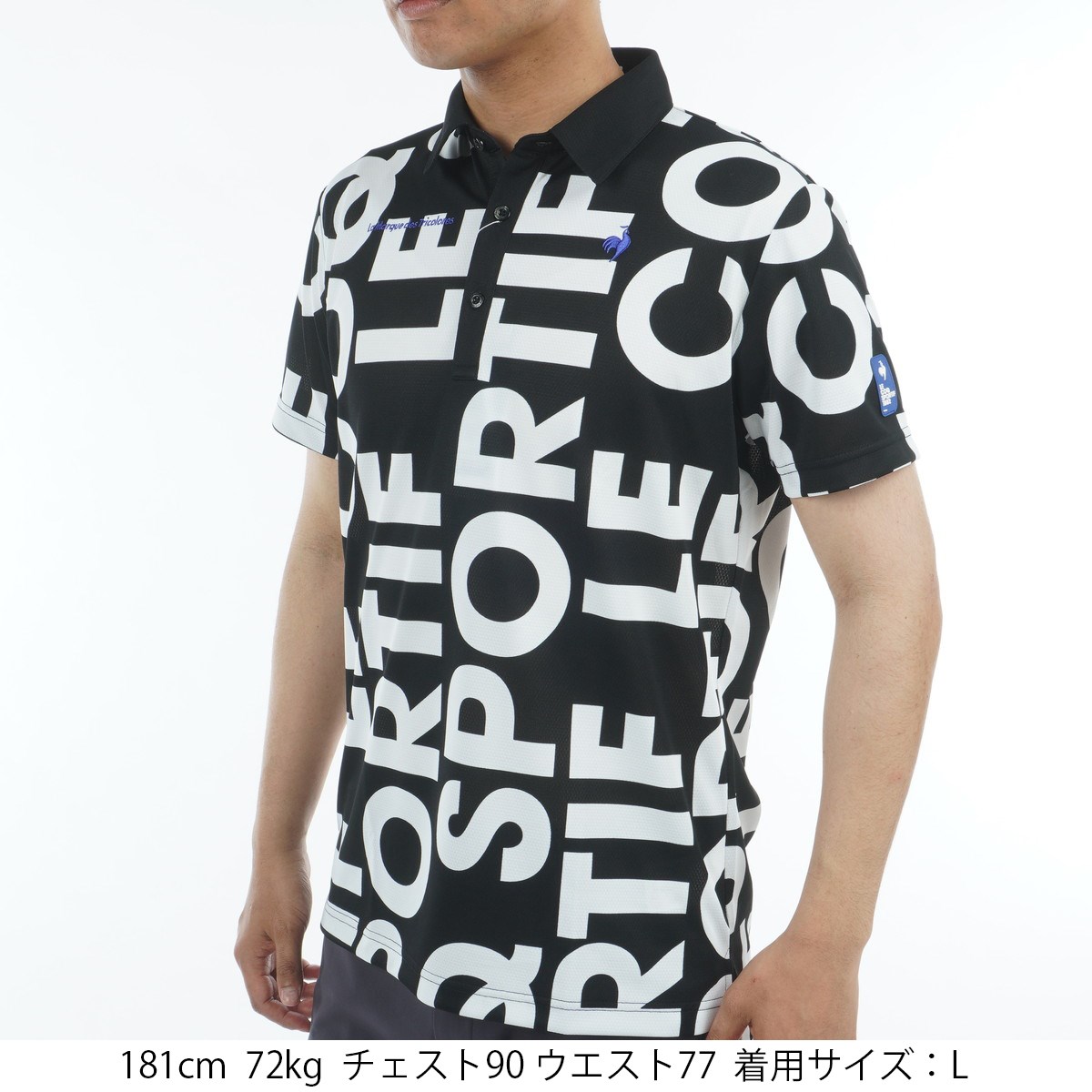 ルコックスポルティフ ゴルフ Le coq sportif GOLF ストレッチフォーサー マルチカラーロゴ柄 半袖ポロシャツ 3L ブラック 00