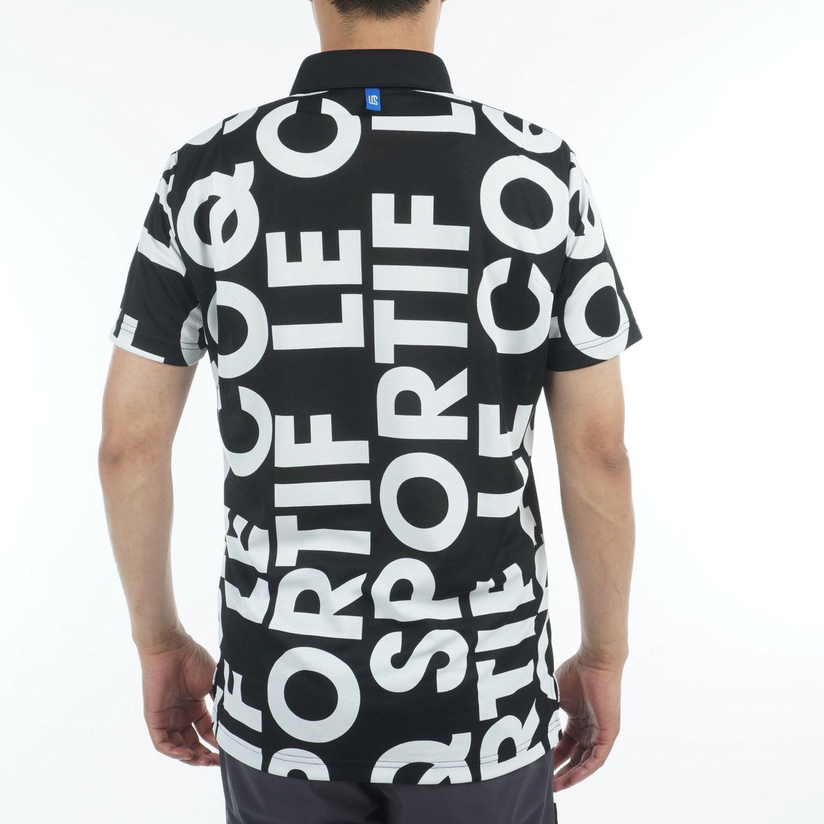 大胆なロゴデザインが目を惹く、通気性に優れた半袖ポロシャツ。