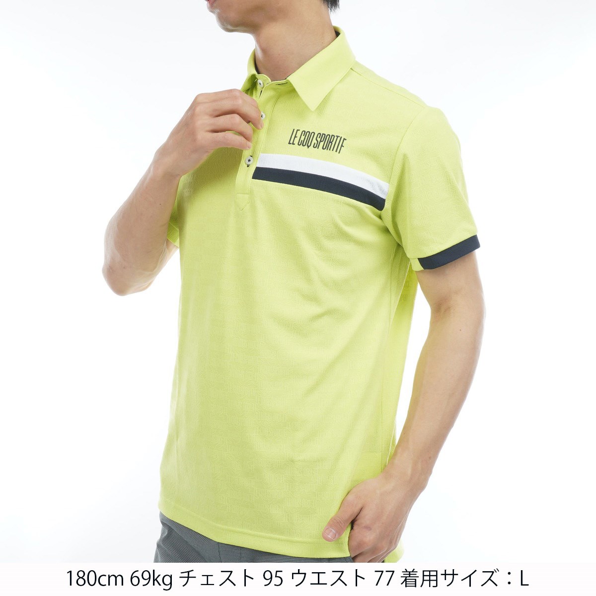ルコックスポルティフ ゴルフ Le coq sportif GOLF ストレッチフォーサー メッシュ小柄ジャガード 半袖ポロシャツ LL ライム 00