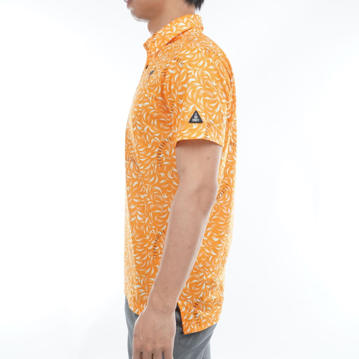 遊び心のあるルースター(鶏のとさか)柄プリントが特徴の半袖ポロシャツ。