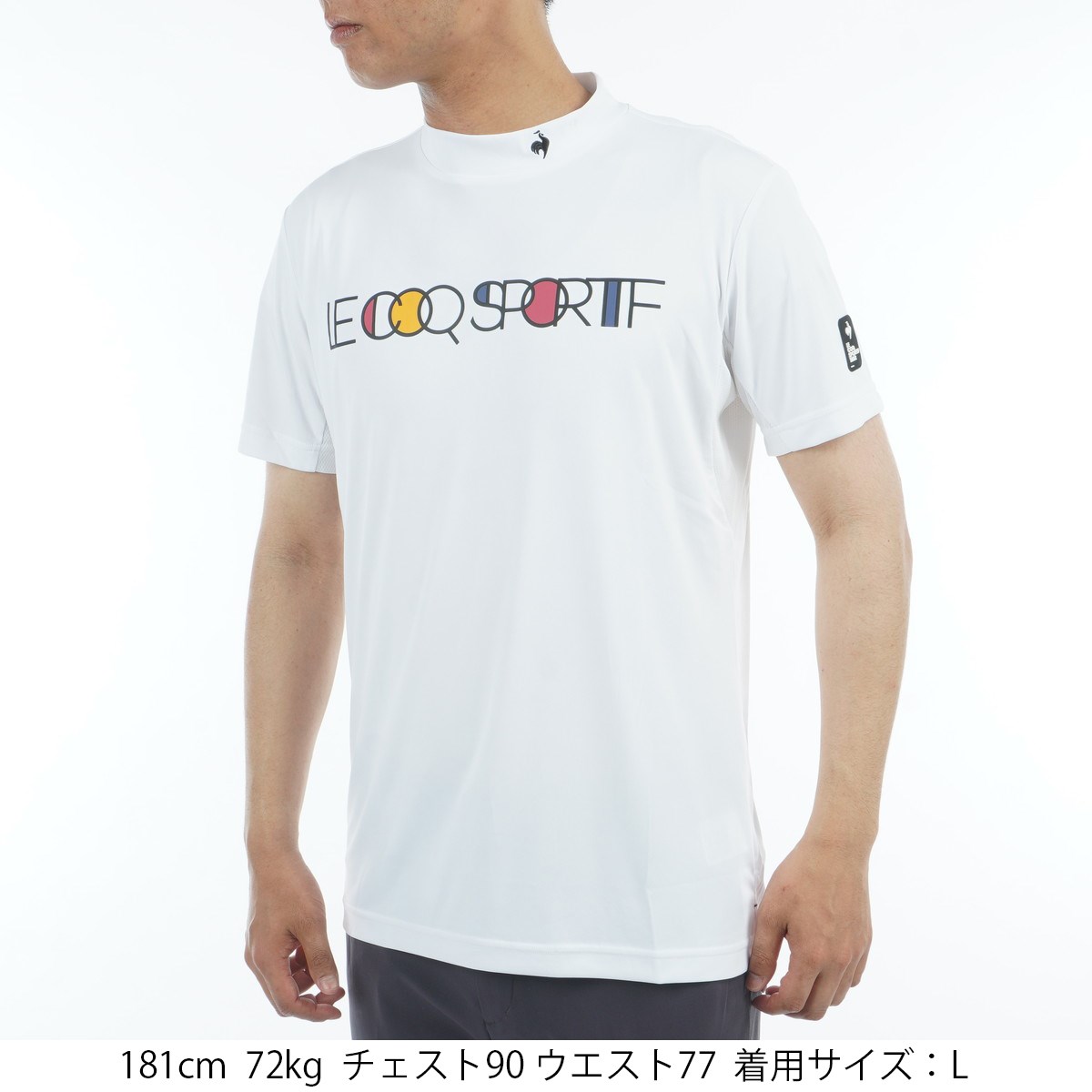 ルコックスポルティフ ゴルフ Le coq sportif GOLF ストレッチフォーサー カラーブロック柄 モックネック半袖シャツ LL ホワイト 00
