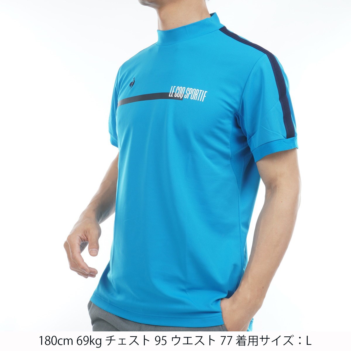 ルコックスポルティフ ゴルフ Le coq sportif GOLF ストレッチフォーサー 部分メッシュ モックネック半袖シャツ M ブルー 00