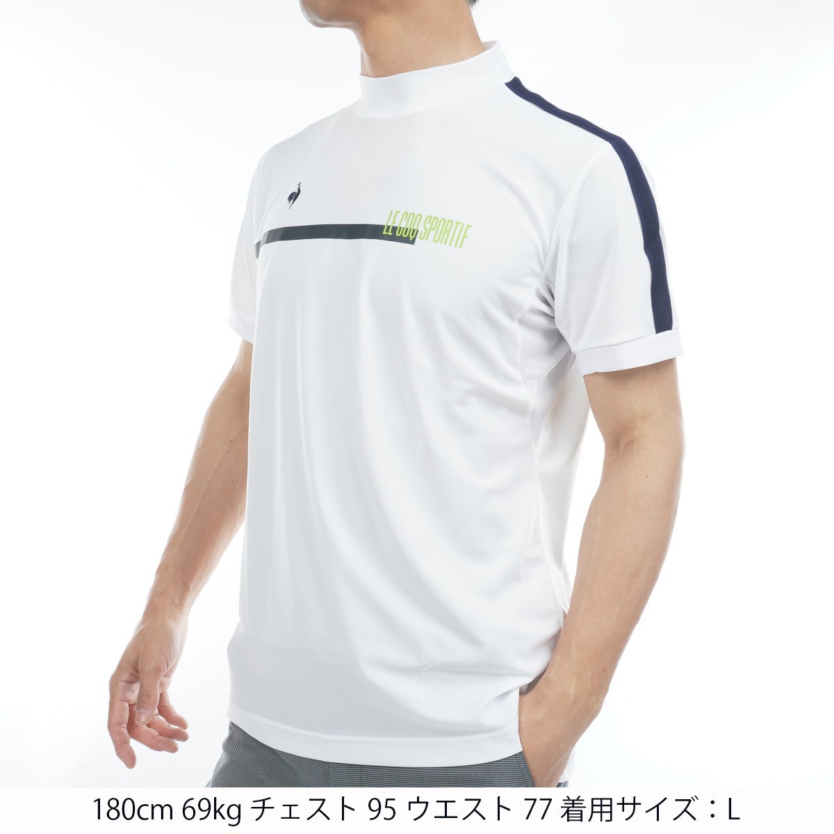 ルコックスポルティフ ゴルフ Le coq sportif GOLF ストレッチフォーサー 部分メッシュ モックネック半袖シャツ M ホワイト 00
