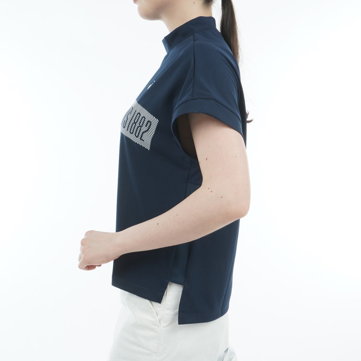 ルコックスポルティフ ゴルフ Le coq sportif GOLF ストレッチフォーサー ワイドシルエット モックネック半袖シャツ LL ネイビー 00 レディス