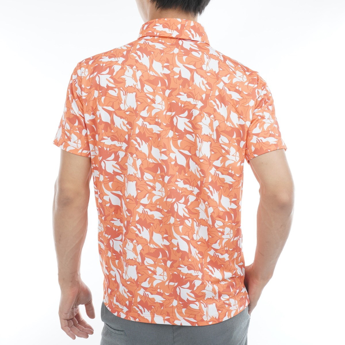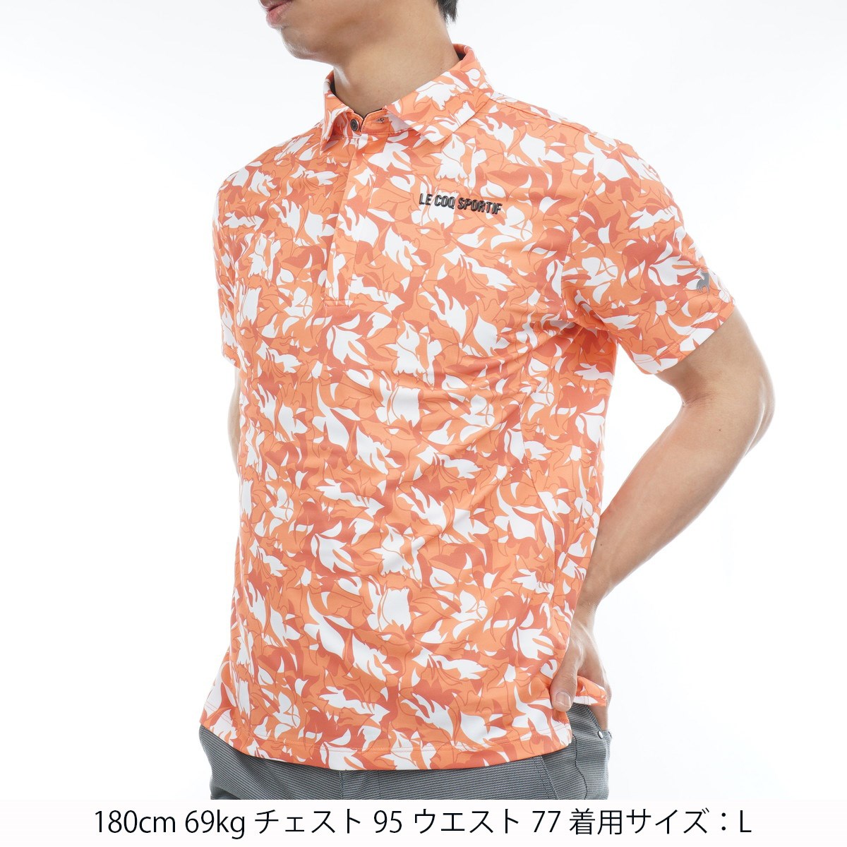 ルコックスポルティフ ゴルフ Le coq sportif GOLF RIJOUME ストレッチフォーサー リーフ柄 半袖ポロシャツ M オレンジ 00