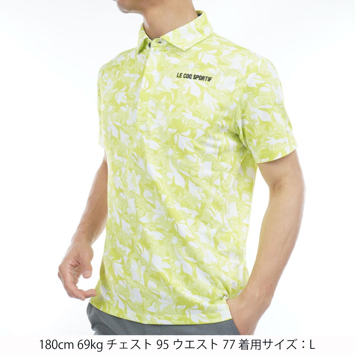 ルコックスポルティフ ゴルフ Le coq sportif GOLF RIJOUME ストレッチフォーサー リーフ柄 半袖ポロシャツ M イエロー 00