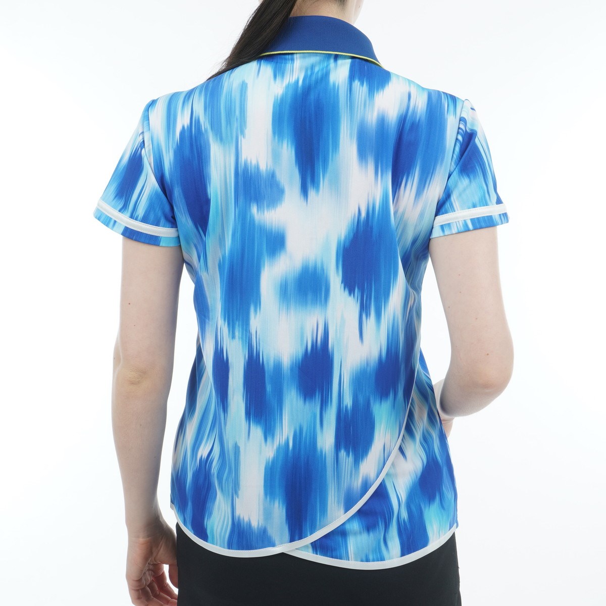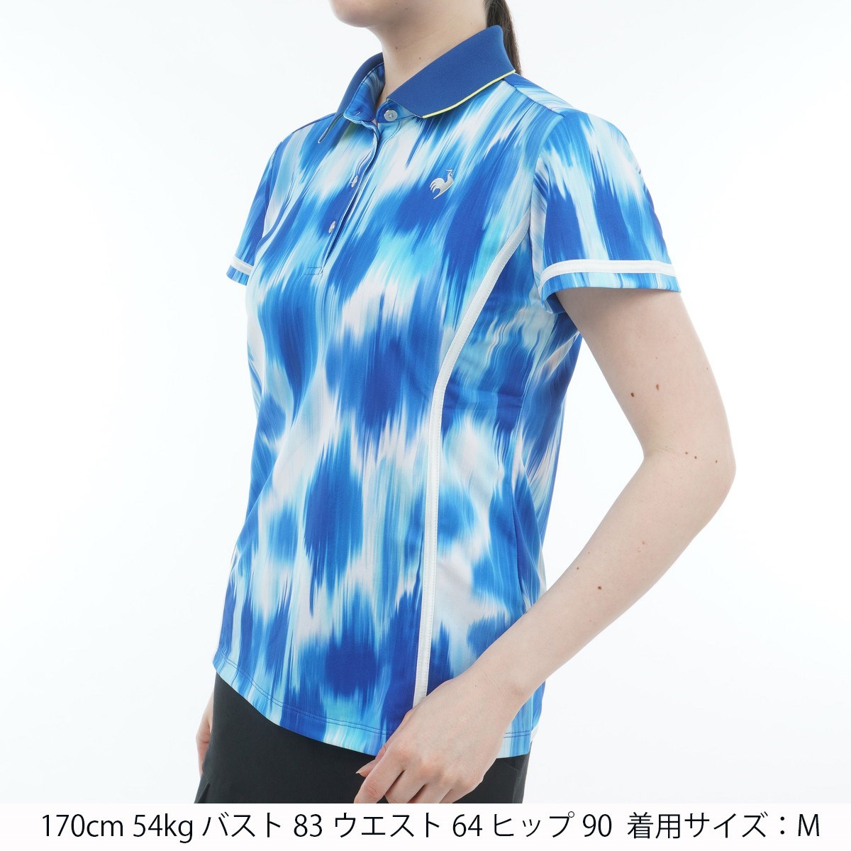 ルコックスポルティフ ゴルフ Le coq sportif GOLF RIJOUME ストレッチ カーブライン 夏柄半袖シャツ M ブルー 00 レディス