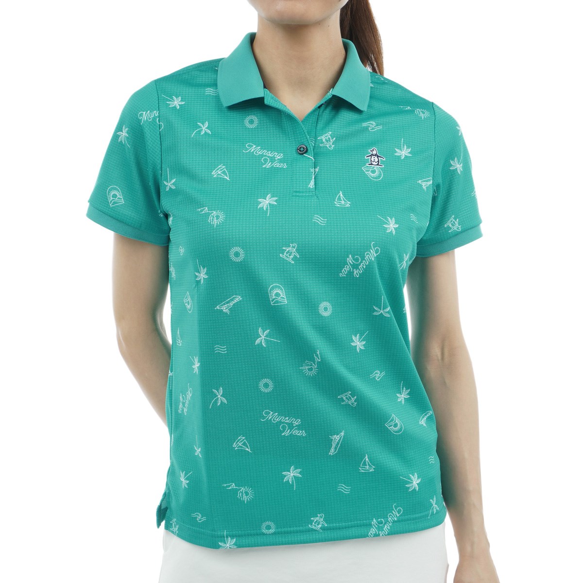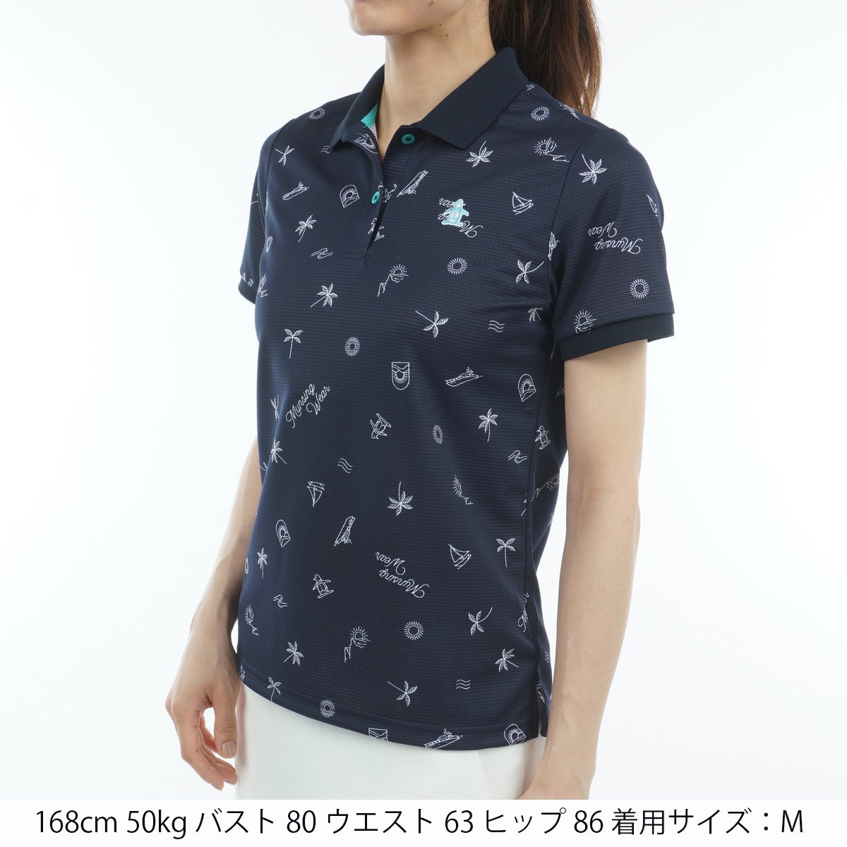 マンシングウェア Munsingwear SEASON COLLECTION SUNSCREEN ストレッチ ワッフルリゾートプリント半袖ポロシャツ M ネイビー 00 レディス
