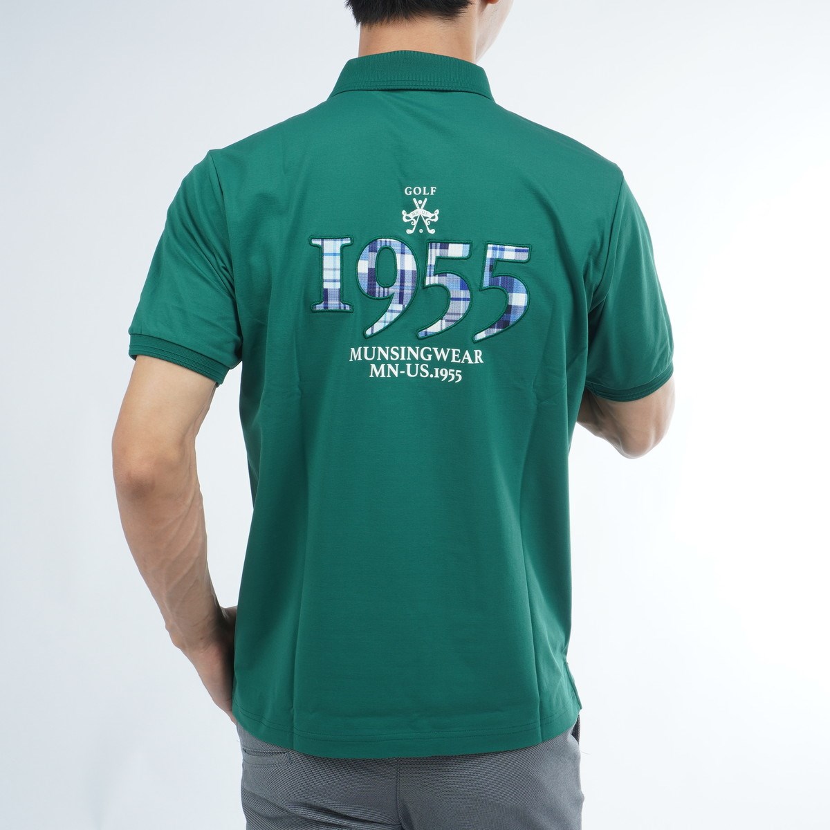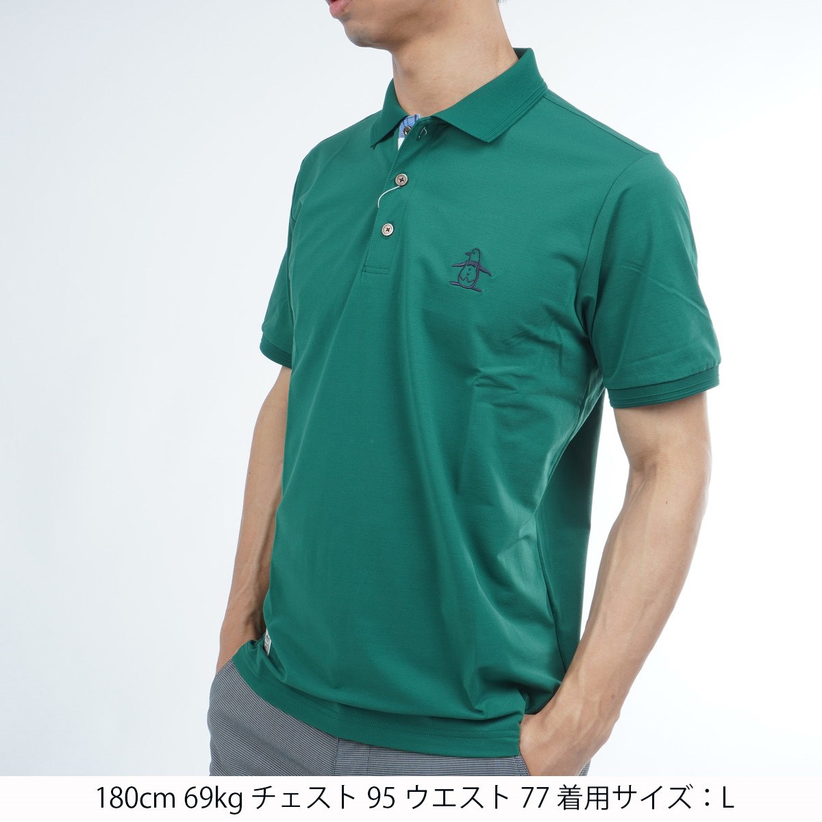 マンシングウェア Munsingwear SEASON ストレッチ サンスクリーン ハイゲージ鹿の子パッチワーク半袖ポロシャツ L グリーン 00