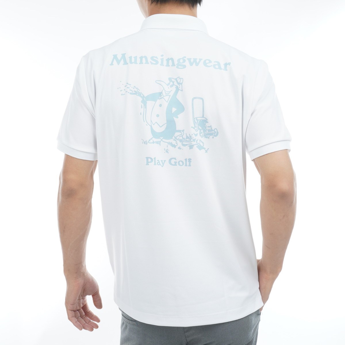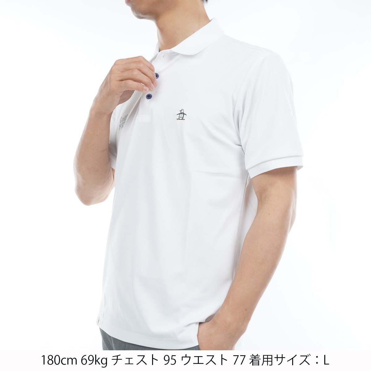 フロントは3色ペンギンのワンポイント刺繍を施し、シンプルかつゴルフ場映えするデザインに落とし込んでいます。