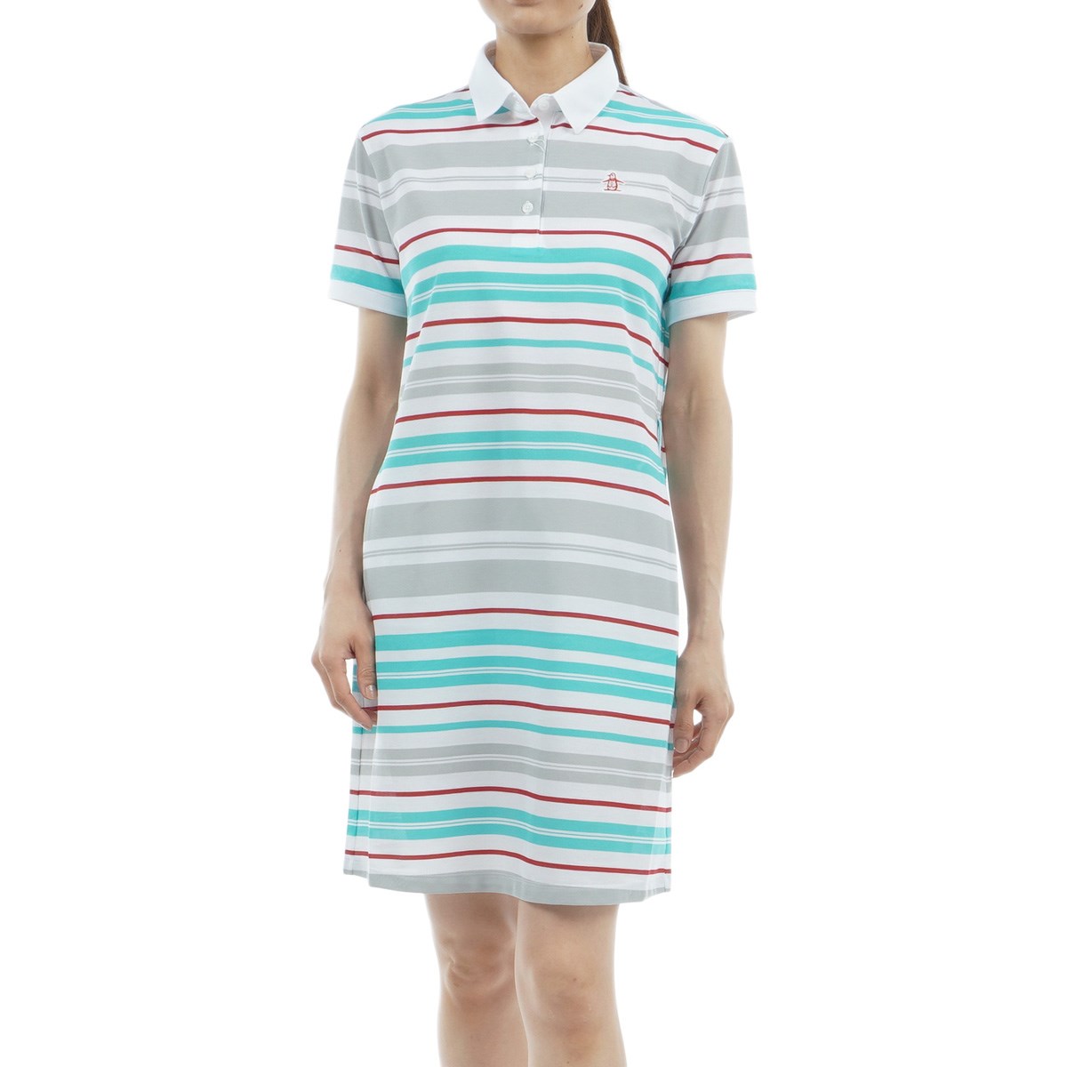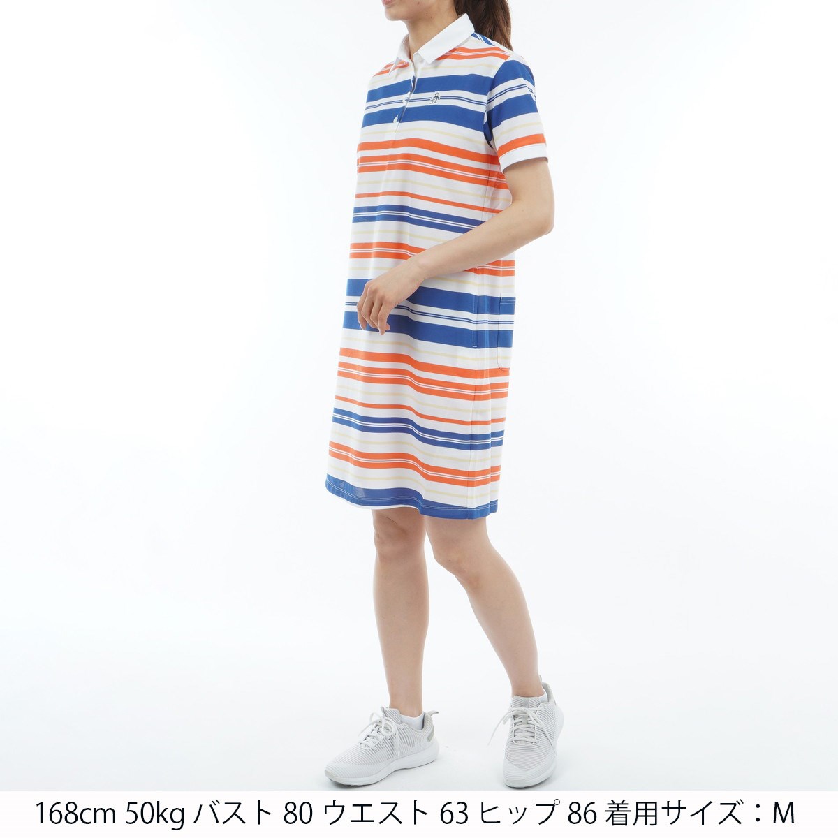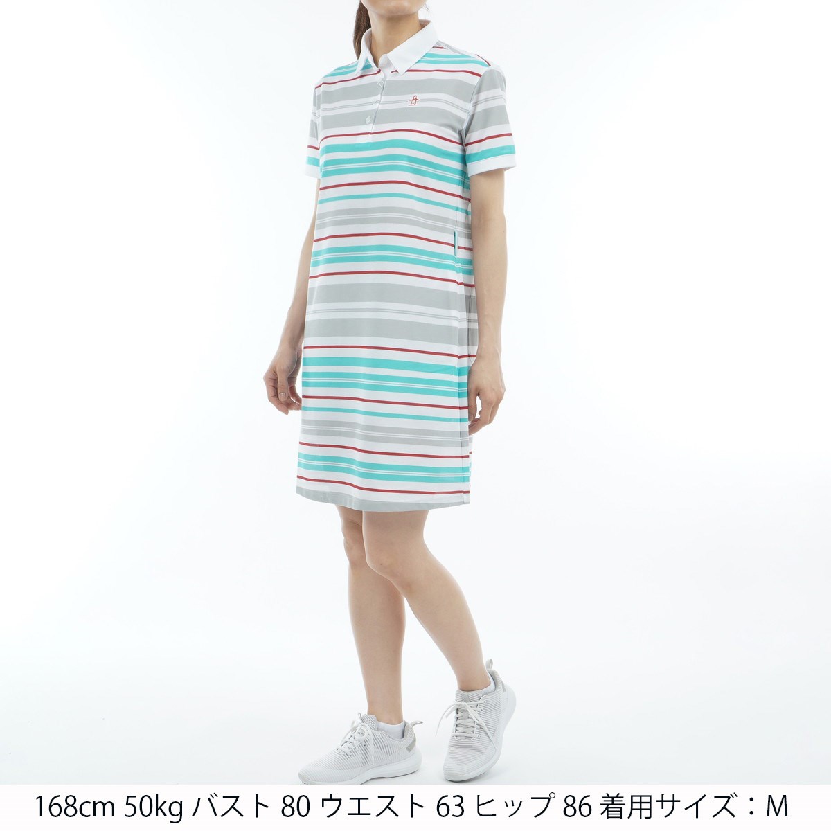 マンシングウェア Munsingwear SEASON COLLECTION インナーパンツ付き ストレッチ マナード先染めパネルボーダー半袖ワンピース M ブルー 00 レディス