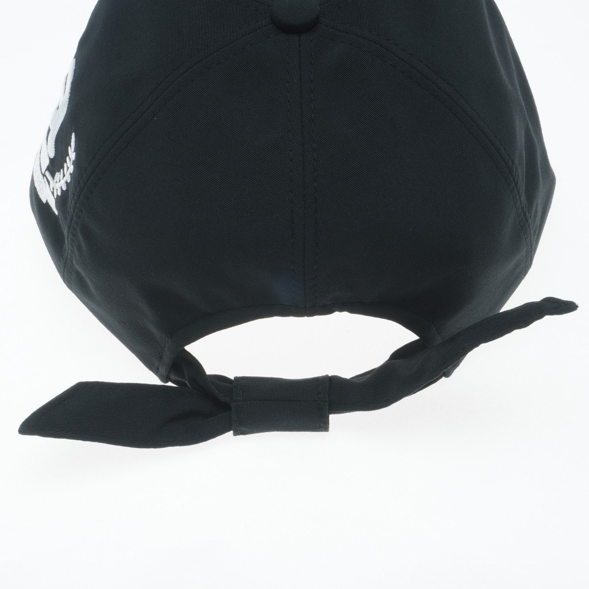 エンブレム風の大きめロゴ刺繍が特徴のキャップ